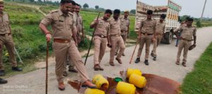 मुखबिर से मिली सूचना पर थानाध्यक्ष राजेन्द्र कुमार त्रिपाठी मय पुलिस फोर्स के ग्राम कंजरन डेरा मजरे बेता गाँव मे दविश दिया तो कुल 05 घरो में 03 अवैध शराब भट्ठी व शराब बनाने के उपकरण तथा 170 लीटर कच्ची नाजायज शराब व 700 किग्रा लहन बरामद हुआ।