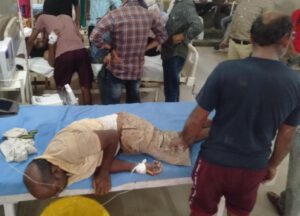 जहाँ ड्यूटी पर मौजूद डॉक्टर युवक को भर्ती कर उसका इलाज कर रहे हैं।