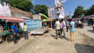 और बाइक को रोड किनारे खड़ी कर दिया था वही बगल मे सदर कोतवाली क्षेत्र के सय्यद वाडा निवासी गंगा दयाल का विकलांग पुत्र महेंद्र राखी की दुकान लगाए हुए था। तभी महिला जिला अस्पताल की कंपाउंड में स्थित डेंटल हॉस्पिटल की जर्जर इमारत का हिस्सा रोड की तरफ भरभर कर पलट गई।