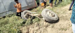 उतंत्र प्रदेश फतेहपुर जिले के गाजीपुर थानां क्षेत्र में एक रोड वेज़ बस जो फतेहपुर से सवारी भरकर बाँदा जनपद जा रही थी। जब वह शाह कस्बे के समीप ससुर खदेरी नदी के बड़े पुल पर पहुंची तभी सामने से आई एक वैन को बचाने के प्रयास में पुल से टकरा कर चार पल्टी खाते हुए खंती में जाकर पलट गई। बस में सवार सवारियों में चीख पुकार मच गई। राहगीरों ने रुक कर सवारियों को बाहर निकल कर सरकारी एम्बुलेन्स व स्थानीय समाज सेवी को घटना की सूचना दिया। सूचना मिलते ही मौके पर पहुंची एम्बुलेन्स व समाज सेवी सभी घायलो को इलाज के लिए जिला अस्पताल लेकर पहुंचे।