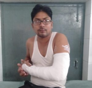 जिससे उपेन्द्र रोड पर गिरकर घायल हो गया। घटना की सूचना उसने अपने परिजनों को दिया सूचना मिलते ही मौके पर पहुंचे परिजन उसको इलाज के लिए जिला अस्पताल लेकर पहुंचे। जहां ड्यूटी पर मौजूद डॉक्टर घायल का इलाज कर रहे है।
