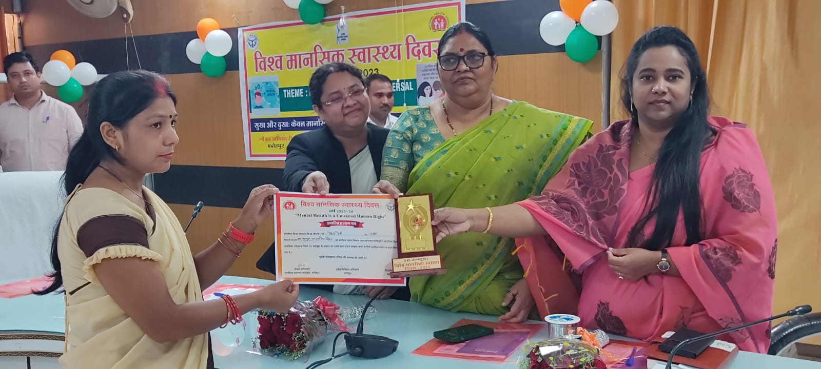 उत्तर प्रदेश फतेहपुर जिले में विश्व मानसिक स्वास्थ्य दिवस कार्यक्रम विकास भवन सभागार में खागा विधायक कृष्णा पासवान, जिलाधिकारी सी.इंदुमती, अपर जनपद न्यायाधीश/सचिव जिला विधिक सेवा प्राधिकरण नित्या पाण्डेय, मुख्य विकास अधिकारी महोदय सूरज पटेल ने फीता काटकर, दीप प्रज्ज्वलित कर व मां सरस्वती जी के चित्र पर मल्यार्पण कर शुभारम्भ किया। मूक बाधिर छात्राओं ने सरस्वती वंदना, स्वागत गीत की प्रस्तुति की कार्यक्रम की अध्यक्षता कर रही खागा विधायक कृष्णा पासवान ने सम्बोधन में कहा कि मानसिक रोग तनाव के कारण होता है। लोगो की दैनिक दिनचर्या में बहुत भागदौड़ होती है जिसके कारण लोग अवसाद में चले जाते है और मानसिक स्थिति सही नही होने के कारण शरीर स्वास्थ्य नही रहता है, आपस में हंस बोलकर जिंदगी बिताए। बेटियो से ही बेटा है, बेटियां सुबह उठकर आपका पूरा कार्य करती है, उसके बाद स्कूल जाती है। बेटा से बेटियां हर क्षेत्र में आगे है, कोई भी परिणाम आता है तो बेटियां ही आगे रहती है। उन्होंने कहा कि प्रधानमंत्री नरेन्द्र मोदी ने महिलाओ को 33 प्रतिशत आरक्षण दिया है। उन्होंने कहा कि अपने अपने घरों में आपस में समन्वय के साथ जीवन व्यतीत करे तभी मानसिक रोगों से निदान मिल सकता है। सेवा करते रहे आगे बढ़ते रहे, से देश और प्रदेश की उन्नति होगी। जिलाधिकारी सी.इंदुमती ने कहा कि विश्व मानसिक स्वास्थ्य दिवस को एक महत्वपूर्ण दिवस के रूप में मनाया जाना चाहिए। हमारी जिन्दगी भागदौड़ भरी है जिससे कि तनाव बढ़ता घटता है।