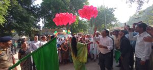 उत्तर प्रदेश फतेहपुर जिले में शारदीय नवरात्रि पर्व के पावन अवसर पर “मिशन शक्ति” के विशेष अभियान फेस-4 का कलेक्ट्रेट परिसर से जिलाधिकारी महोदया सी.इंदुमती, पुलिस अधीक्षक उदय शंकर सिंह ने संयुक्त रूप से दो पहिया वाहनों, चार पहिया वाहनों को महिला सशक्तिकरण जन जागरूकता रैली को हरी झंडी व गुब्बारे छोड़कर रवाना किया। यह रैली कलेक्ट्रेट से पटेल नगर चौराहा, वर्मा तिराहा, ज्वालागंज चौराहा, बाकरगंज, सदर अस्पताल होते हुए पत्थरकटा चौराहा से कलेक्ट्रेट में समाप्त हुई।