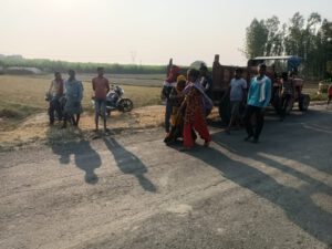 तभी पीछे से आ रहा तेज रफ्तार अनियंत्रित ट्रैक्टर ट्राली ने जोरदार टक्कर मार दिया। जिसे ग्रामीणों ने ट्रैक्टर चालक व ट्रैक्टर सहित मौके पर ही पकड़ा लिया। वही घटना की सूचना पाकर मौके पर पहुंची पुलिस ने मृतक के शव को कब्जे में लेकर पोस्टमार्टम के लिए भेज दिया। वही घटना को देख ग्रामीणों ने जमकर हंगामा काटा यहा तक बिगड़ते माहौल को देखते हुए धाता व खखरेरु थाना फोर्स मौजूद रहा उग्र होते ग्रामीणों को रोकने के लिए मौके पर प्रशासन को पीएसी भी बुलानी पड़ी जहा घटना स्थल पर काफी तादाद में पुलिस बल मौजूद रहा। वही घटना को लेकर थाना प्रभारी वृंदावन राय ने बताया की मृतक के स्वजनों की दी गई लिखित तहरीर के आधार पर ट्रैक्टर चालक के खिलाफ मुकदमा दर्ज कर अग्रिम कार्यवाई कर दिया।