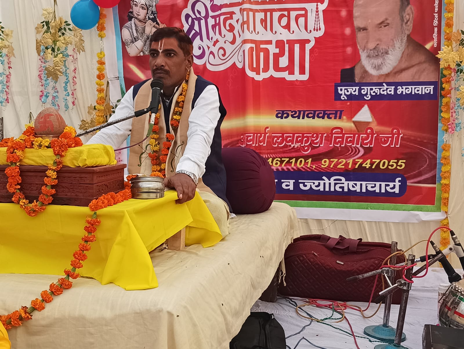उत्तर प्रदेश फतेहपुर जिले के हथगाम नगर के सिठौरा रोड स्थिति लक्ष्मी कांत पाण्डेय (राजा मास्टर ) के आवास में चल रही संगीतमय श्रीमद भागवत कथा के सातवें दिन कथा व्यास आचार्य लवकुश तिवारी ने विभिन्न प्रसंगों पर प्रवचन दिए।