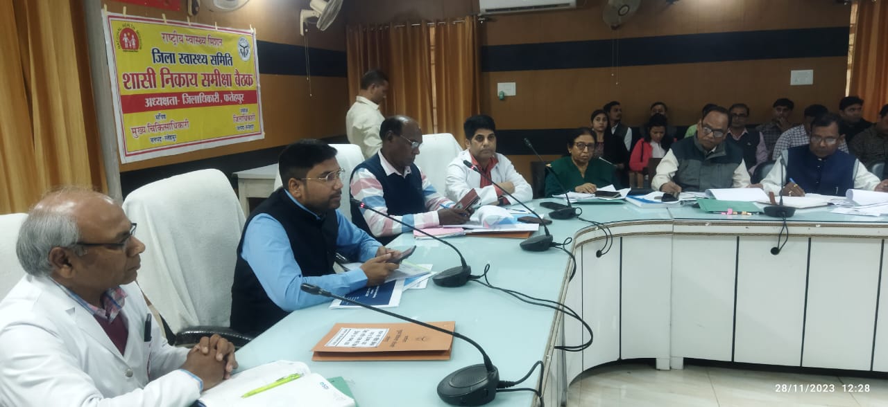 उत्तर प्रदेश फतेहपुर जिले में राष्ट्रीय स्वास्थ्य मिशन के अंतर्गत जिला स्वास्थ्य समिति की बैठक विकास भवन सभागार में मुख्य विकास अधिकारी/प्रभारी जिलाधिकारी महोदय सूरज पटेल की अध्यक्षता में संपन्न हुई। उन्होंने समस्त एमओवाईसी से कहा कि स्वास्थ्य केंद्रों में आने वाले मरीजों को संवेदनशीलता के साथ बेहतर स्वास्थ्य सुविधाएं मुहैया कराए और मुख्य चिकित्साधिकारी इसकी परस्पर निगरानी बनाए रखे। स्वास्थ्य विभाग के सभी पैरामीटर्स की विस्तृत समीक्षा की। उन्होंने कहा कि गर्भवती महिलाओ की सभी जांचे समय से कराए साथ ही हाईरिस्क गर्भवती महिलाओं को संवेदनशीलता के साथ सभी अनुमन्य स्वास्थ्य सुविधाएं उपलब्ध कराए। गर्भवती महिलाओं, बच्चो का टीकाकरण समय से कराए और इसकी फीडिंग भी पोर्टल पर समय से करे। बी0एच0एन0डी0 दिवस पर की जाने वाली जांचों को संवेदनशीलता के साथ कराए और समय समय पर निरीक्षण करने के निर्देश संबंधित अधिकारियों को दिए। उन्होंने कहा कि जिन ब्लाको से आशा के एनसेंटिव भुगतान की रिपोर्ट शेष है वह ब्लॉक जल्द से जल्द रिपोर्ट सम्मिलित करे जिससे कि भुगतान हो सके।