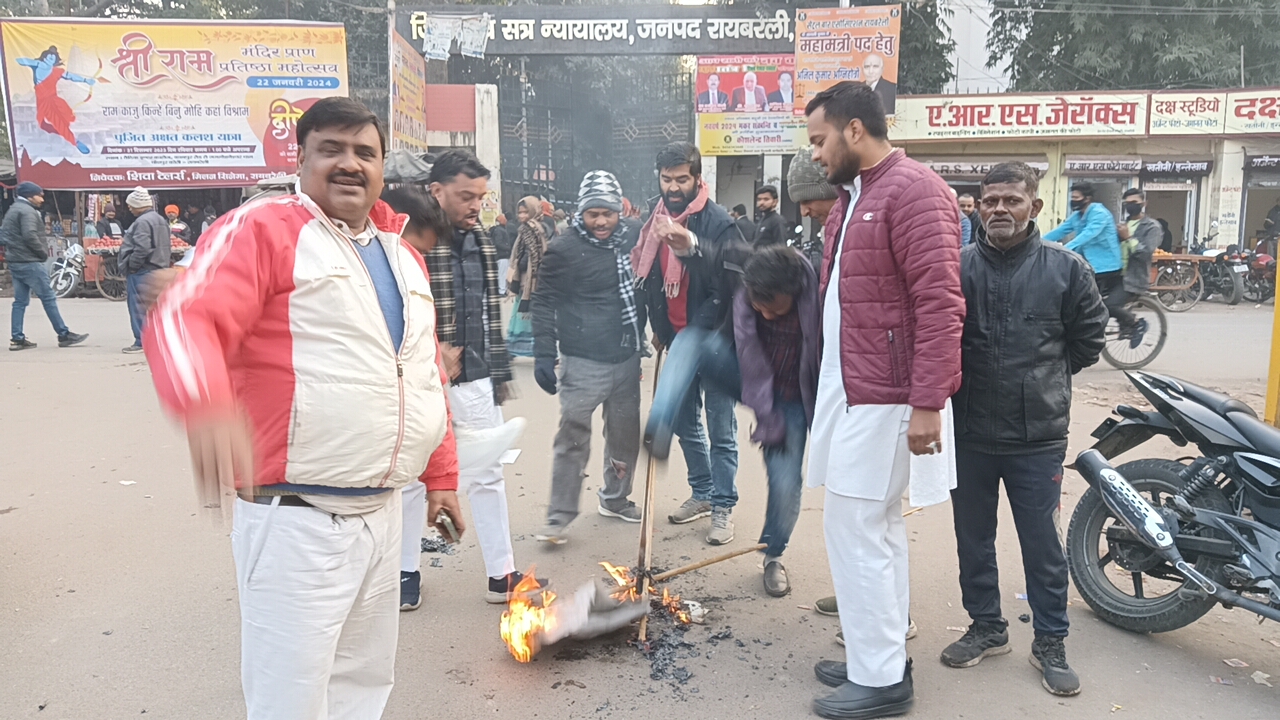 उत्तर प्रदेश रायबरेली जिले में आज भारतीय युवा कांग्रेस के साथियों ने असम के मुख्यमंत्री हेमंत विश्व शर्मा का कचहरी गेट पर फूंका पुतला, जिसमे मुख्य रूप से कांग्रेस नेता आमीन पठान सोशल मीडिया प्रदेश सचिव कमल सिंह चौहान जिला उपाध्यक्ष अभिनव तिवारी संगम जिला महासचिव मोहित सिंह हरचंद्रपुर विधानसभा अध्यक्ष सौरभ अवस्थी सरेनी विधानसभा अध्यक्ष जितेंद्र द्विवेदी सदर विधानसभा अध्यक्ष सुहैल खान (सोना ) सभासद अतुल शर्मा आदि मौजूद रहे। कहा कि भारत जोड़ो न्याय यात्रा कोई भी ताकत नहीं रोक सकती और न्याय के हक के लिए लड़ने वाले हमारे नेता राहुल गांधी की यात्रा में विघ्न डालने वाले कलयुग के कालनेमी है। जिसमे कमल सिंह चौहान ने कहा कि वर्तमान सरकार अपनी सत्ता का दुरुपयोग कर रही है जो भारतवर्ष के लोकतंत्र के लिए हानिकारक है , जो कि नही होना चाहिए। कांग्रेस के नेता अमीन पठान ने कहा कि भारत जोड़ो न्याय यात्रा को जिस तरीके से जगह जगह रोका जा रहा है उससे भारत की जनता समझ रही है कि तानाशाह किस तरीके से कितना डरा हुआ है। अब की चाहे जो हो आम चुनाव में बीजेपी की हार तय है। जनता इनके जुल्मों का हिसाब करेगी।
