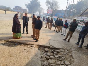 उत्तर प्रदेश फतेहपुर जिले में सड़क सुरक्षा सप्ताह के अंतर्गत 29 जनवरी को जिलाधिकारी सी.इंदुमती, पुलिस अधीक्षक उदय शंकर सिंह द्वारा 50 नंबर गेट के ओवर ब्रिज, बांदा सागर मार्ग रेलवे अंडर पास, ससुर खदेरी नदी पुल के पास, कस्बा शाह, खटौली, लदीगंवा के मुख्य मार्ग का औचक निरीक्षण किया। निरीक्षण के दौरान जिलाधिकारी ने 50 नंबर गेट के ओवर ब्रिज पर सड़क के किनारे मिट्टी, कूड़ा का जमाव पाए जाने पर अधिशाषी अभियंता पीडब्ल्यूडी प्रांतीय खंड एवं अधिशाषी अधिकारी नगर पालिका परिषद सदर को निर्देशित किया कि तत्काल कूड़ा, मिट्टी हटाया जाय। साथ ही जोनिहा चौराहे के पास (जोनिहा मार्ग) पर गड्डे पाए जाने पर जल्द ठीक कराए जाने के निर्देश अधिशाषी अभियंता पीडब्ल्यूडी प्रांतीय खंड को दिए।