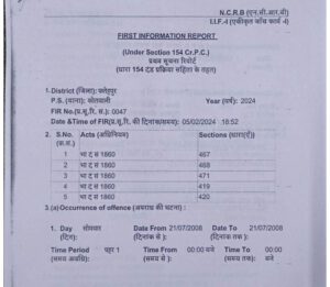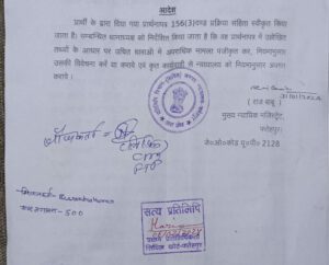 प्रार्थी द्वारा अपने कथन के समर्थन में बैनामा की छायाप्रति दाखिल किया गया है। प्रार्थना पत्र में वार्णित कथनों से प्रथम दृष्टया संज्ञेय अपराध का गठित होना प्रकट है। प्रकरण में पुलिस द्वारा विवेचना कराया जाना आवश्यक प्रतीत होता है। अतः प्रार्थना पत्र अन्तर्गत धारा 156 (3) दण्ड प्रक्रिया संहिता स्वीकार किये जाने योग्य है। उसके बाद कोतवाली में कामिनी देवी पत्नी विनोद कुमार मिश्रा, विनोद कुमार मिश्रा पुत्र हरी शंकर मिश्रा, सन्तोष कुमार द्विवेदी पुत्र शंकर लाल द्विवेदी, कमलेश कुमार पुत्र शंकर दयाल, बसन्त बाजपेई पुत्र अवध बिहारी के विरोध 467, 468, 471, 419, 420 धारा के तहत एफआईआर दर्ज हो गई।