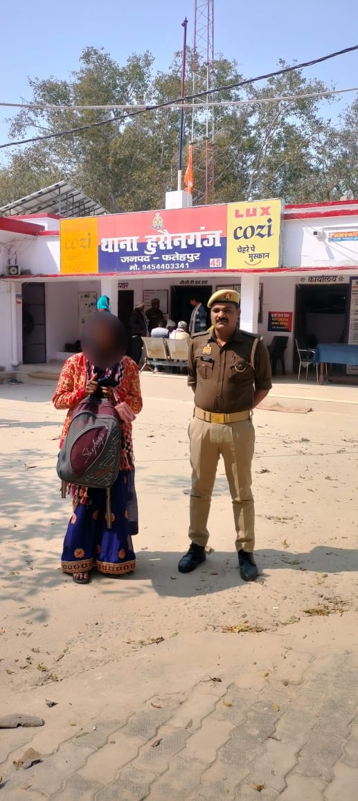उत्तर प्रदेश फतेहपुर जिले के हुसैनगंज थाने में बीती शाम को ग्राम प्रधान भादर अजय पटेल द्वारा जरिये दुरभाष थाना हुसैनगंज पर सूचना दी गयी कि एक महिला सीमा देवी पत्नी राजू सिंह निवासिनी कुल्लड का पुरवा मजरे भदसरी थाना हुसैनगंज जनपद फतेहपुर जिसकी परीक्षा शहर फतेहपुर में थी, परीक्षा देकर अपने घर वापस लौटते समय रास्ते में ऑटो से उतरते वक्त भूल बस अपना बैग ऑटो में ही छोड़ दिया है। सूचना के आधार पर थाना हुसैनगंज पुलिस द्वारा त्वरित कार्यवाही के क्रम में ऑटो की पहचान कर महिला का बैंग जिसमें 2000रु0, महिला का आधार कार्ड व शैक्षणिक डाकुमेंट थे। बरामद करके सही सलामत वापस कराया गया।