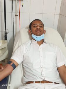 रक्तदान करने वालो में अर्णव सोनी एमबीबीएस 2023 बैच, देवांशी एमबीबीएस 2023 बैच,