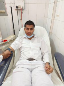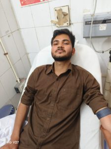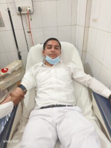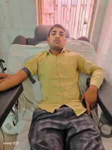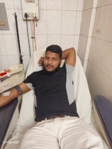 पीयूष चौधरी एमबीबीएस 2023 बैच ने अपना अपना रक्तदान दिया। इस मौके पर सहायक आचार्य डॉ० चंद्रावती,