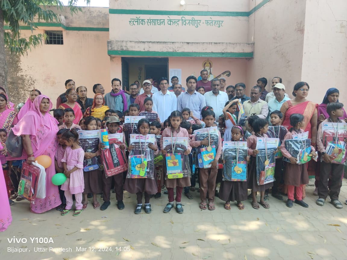 उत्तर प्रदेश फतेहपुर जिले के ब्लॉक विजयीपुर क्षेत्र के ब्लॉक रिसोर्स सेंटर में हमारे आंगन हमारे बच्चे उत्सव मनाया गया।इस कार्यक्रम की शुरुवात माँ सरस्वती को माल्यार्पण करके सरस्वती वंदना के साथ शुभारंभ किया गया। और इस कार्यक्रम में ब्लॉक की लगभग 50 से अधिक आंगनबाड़ी कार्यकत्री, अभिभावको व प्रधान अध्यापको ने प्रतिभाग किया किया। खागा तहसील क्षेत्र के विजयीपुर ब्लांक अन्तर्गत रिसोर्स सेंटर में कार्यक्रम को संबोधित करते हुए खंड शिक्षा अधिकारी रजनीश कुमार श्रीवास्तव ने बताया कि ब्लॉक को निपुण् बनाने के लिए आगानबाडी और प्रधान अध्यापको को प्रेरित किया। और इन्होंने कार्यशाला में बच्चों के उत्साह वर्धन हेतु स्टेशनरी भी बांटी गई। और साथ ब्लॉक के निपुण् बच्चों को प्रमाण पत्र भी दिये गये। वही ब्लॉक के बाल विकास परियोजना अधिकारी अरविंद कुमार ने अपने सम्बोधन में आंगन बाडी कार्यकत्री को बताया कि निपुण् लक्ष्य की प्राप्ति तभी हो सकती है ।जब वो आंगन बाडी आने वाले बच्चों को अच्छी शिक्षा दीक्षा दे।इस अवसर पर निपुण् लक्ष्य की प्राप्ति कर लिए विद्यालयों के प्राथमिक रामपुर, कंपोजिट विद्यालय सूदनपुर, प्राथमिक विद्यालय पाम्भीपुर, प्राथमिक विद्यालय उम्मेदपुर, प्राथमिक विद्यालय उमरा को खंड शिक्षा अधिकारी विजयीपुर को सम्मानित किया गया। इस मौके पर ब्लॉक अकादमिक रिसोर्स के याजुवेंद्र सिंह नवल वर्मा भी सहित कई प्रधान अध्यापक भी मौजूद रहे।