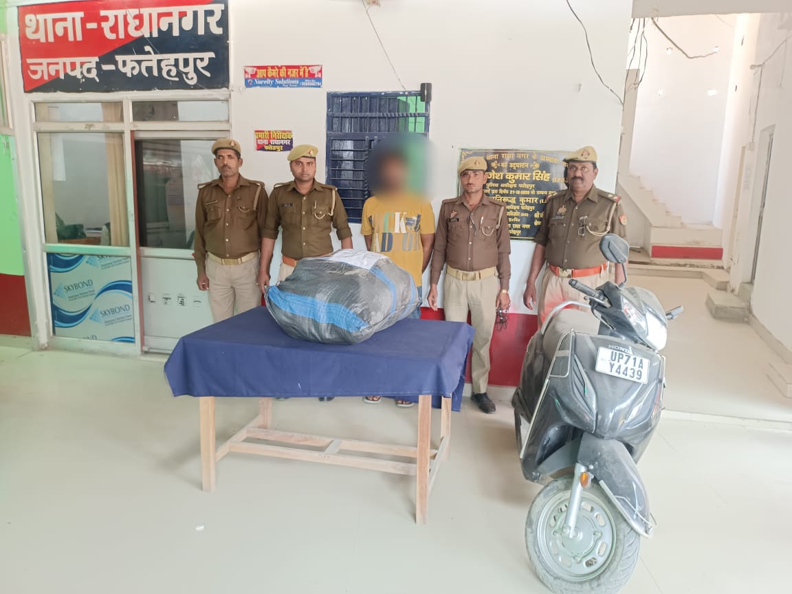 उत्तर प्रदेश फतेहपुर जिले के राधानगर थाने की पुलिस को बड़ी सफलता हाथ लगीं है। 20 किलो 600 ग्राम अवैध गाँजे के साथ सवार अंतर्जनपदीय गांजा तस्कर को पुलिस ने गिरफ्तार किया। आपको बताते चले कि काफी समय से पुलिस को इस गाँजा तस्कर की तलाश थी। पुलिस ने चेकिंग के दौरान राधा नगर थानां क्षेत्र के रेलवे अण्डर पास बक्शपुर से थानां क्षेत्र के फुलवा मऊ गाँव निवासी नरोत्तम शिवहरे के 28 वर्षीय पुत्र सचिन शिवहरे को एक्टिवा स्कूटी UP71 AY 4439 पर 20 किलो 600 ग्राम अवैध गाँजे के साथ गिरफ्तार कर लिया। गिरफ्तारी व बरामदगी के आधार पर थाने पर मु0अ0सं0- 38/2024 धारा 8/20 एनडीपीएस एक्ट पंजीकृत कर अग्रिम कार्यवाई कर गिरफ्तार तस्कर को न्यायालय के लिए रवाना किया गया। पकड़ा गया तस्कर का अपराधिक इतिहास है। जिसके विरुद्ध जनपद व गैर जनपद के कई थानों के अपराधिक केश दर्ज है।