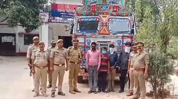 उत्तर प्रदेश फतेहपुर जिले के थरियांव थाने की पुलिस टीम द्वारा चार वाहन चोर आरोपीयो को गिरफ्तार कर उनके पास से एक अदद ट्रक बरामद किया गया। आज थरियांव पुलिस द्वारा असोथर थानां क्षेत्र के सेमरी गाँव निवासी इन्द्रजीत यादव का 26 वर्षीय पुत्र अनुज कुमार यादव, सदर कोतवाली क्षेत्र के रामगंज पक्का तालाब निवासी रामप्रसाद का 36 वर्षीय पुत्र राजेश धोबी, कानपुर जनपद के नौबस्ता थानां क्षेत्र के गोपालनगर निवासी बृजकिशोर गुप्ता का 41 वर्षीय पुत्र धर्मेन्द्र कुमार गुप्ता उर्फ धर्मू , तोसीफ आलम का 40 वर्षीय पुत्र मेराज आलम सिद्दीकी कानपुर जनपद के कोहना थानां क्षेत्र के नसीम रेसीडेन्सी मकान नं0 1 ग्राउण्ड फ्लोर हाल पता 220/बी श्यामनगर थाना श्यामनगर कानपुर को आम्बापुर ओवर ब्रिज के समीप से गिरफ्तार किया गया। जिनके कब्जे से एक अदद ट्रक बरामद किया गया और थाना स्थानीय पर मुकदमा पंजीकृत कर आवश्यक विधिक कार्यवाई करते हुए न्यायालय रवाना किया गया। वही अपर पुलिस अधीक्षक बिजय शंकर मिश्रा ने बताया थरियांव थानां क्षेत्र से चार अंतर्जनपदीय वाहन चोरों को गिरफ्तार किया गया है। उनके कब्जे से एक ट्रक व दो चेचिस नम्बर बरामद किया गया है।इनका एक साथी अभी फरार है उसको भी जन्द गिरफ्तार कर लिया जाएगा।