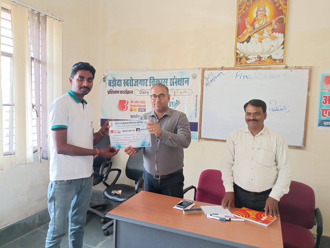 उत्तर प्रदेश फतेहपुर जिले में बडौदा स्वरोजगार विकास संस्थान रामपुर थरियांव के तत्वावधान में डेयरी पालन का दस दिवसीय आवासीय प्रशिक्षण कार्यक्रम का समापन किया गया। जिसमें डेयरी पालन हेतु विस्तार पूर्वक चर्चा व जानकारियां दी गयी। इस कार्यक्रम के निदेशक प्रतीक शर्मा व मुख्य अतिथि जिला प्रबंधक हमीरपुर करुणेश कुलश्रेष्ठ एवं संचालन सत्येन्द्र कुमार ने किया। स्वरोजगार विकास संस्थान रामपुर थरियांव फतेहपुर डेयरी पालन के दस दिवसीय आवासीय प्रशिक्षण का समापन करते हुए संस्थान के निदेशक प्रतीक शर्मा ने प्रशिक्षणार्थियों को डेयरी पालन का महत्व एवं उनके उत्साहवर्धन के साथ संस्थान एवं बैंक आफ बड़ौदा की ओर से हर सम्भव सहायता प्रदान करने हेतु आश्वासन दिया गया।