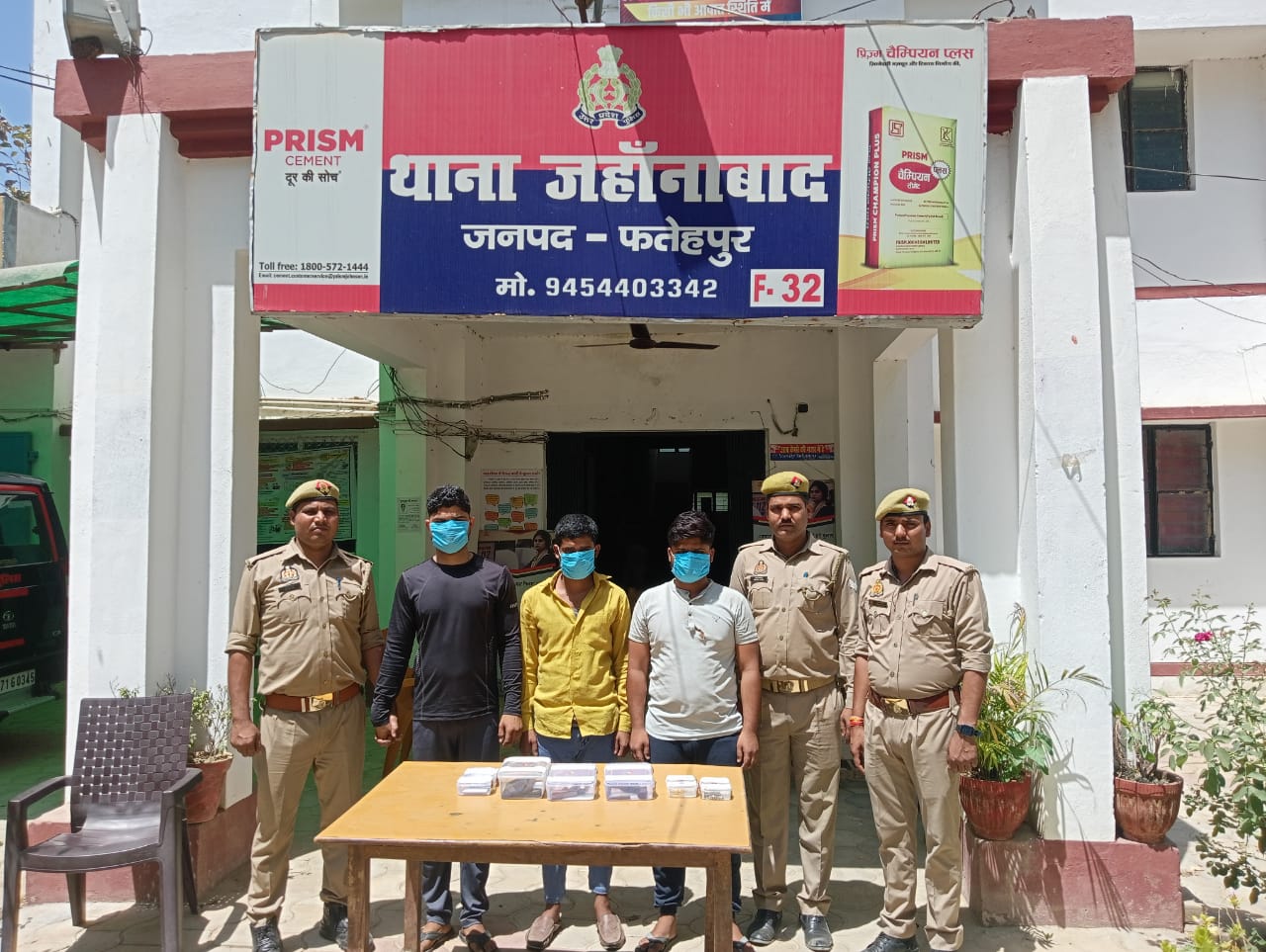 उत्तर प्रदेश फतेहपुर जिले के जहानाबाद थाने की पुलिस ने टप्पेबाज चोरो के गैंग के पाँच आरोपीयो को गिरफ्तार कर खुलासा किया है। आरोपीयो के कब्जे से चोरी/टप्पेबाजी की घटनाओं में गया माल/तमंचा व कारतूस बरामद किया गया है। 10 अप्रैल को थाने पर मनोज कुमार द्वारा उनकी मुरली ज्वैलर्स दुकान जहानाबाद में टप्पेबाजी कर चोरी की घटना होने के संबंध में दी गयी तहरीरी सूचना के आधार पर अज्ञात में मुकदमा पंजीकृत किया गया था। जिसमे कार्यवाई के मर्म मुखबिर की सूचना पर आरोपी पुष्पा देवी स्कूल के सामने मैदान से हरदोई जनपद के बेनीगंज थानां क्षेत्र के नयापुरवा निवासी विष्णु शुक्ला का 24 वर्षीय पुत्र श्रृषि शुक्ला व गाँव निवासी रामदत्त दुवे का 21 वर्षीय पुत्र शिवम दुवे और गाँव निवासी रतीन्द्र तिवारी की 40 वर्षीय पत्नी छुन्ना तिवारी उर्फ उमा तिवारी एवम जनपद के मल्लावां थानां क्षेत्र के भगवंत नगर निवासी राकेश दुवे का 23 शोभित दुवे व गाँव निवासी राकेश दवे की 47 वर्षीय पत्नी उषा दुवे को दो तमंचा 315 बोर, चार जिंदा कारतूस, दो सोने के लॉकेट, दो चांदी की पायल व 7150 रुपये, तीन एनड्रॉइड मोबाइल एक कीपैड मोबाइल, एक काले कलर की बुलेरो UP32NU1346 के साथ गिरफ्तार कर न्यायालय रवाना किया गया। और फरार आरोपी दरदोई जनपद के बेनीगंज थानां क्षेत्र के नयापुरवा गाँव निवासी शिवपूजन शुक्ला की पत्नी रिंकी शुक्ला की तलास की जा रही है। आरोपी जगह-जगह बुलेरो से जाते हैं तथा दो ग्रुपो में बंटकर ज्वैलरी की दुकान को टारगेट करते हैं। ज्वैलरी की दुकान में जेवरात खरीदने/देखने के बहाने काफी सामान निकलवाने के बाद ग्रुप का कोई सदस्य धोखाधड़ी से सामान चुरा लेता हैं बाकि सदस्य सामान खरीदने के बहाने दुकानदार को बातों में उलझाये रहते है।