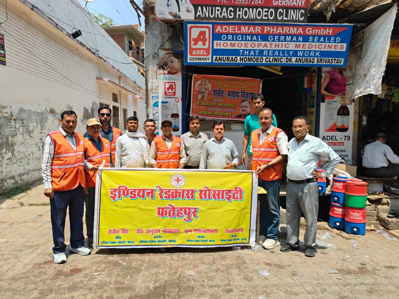 उत्तर प्रदेश फतेहपुर जिले में आज 23 अप्रैल को श्री रामभक्त हनुमान जी की जयंती के अवसर पर जगह जगह रोड किनारे भक्तों ने रास्ता चलते राहगीरो को प्रसाद वितरण किया। इसी क्रम में सदर कोतवाली रोड पर स्थित अनुराग होम्यो मेडिकल स्टोर के सामने इंडियन रेडक्रास सोसाइटी और डॉ सत्यनारायण सेवा फाउंडेशन के संयुक्त तत्वावधान व चेयरमैन डॉ अनुराग श्रीवास्तव के नेतृत्व में शर्बत प्रसाद का वितरण कार्यक्रम आयोजित किया गया।