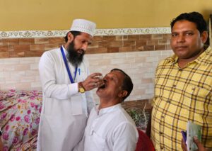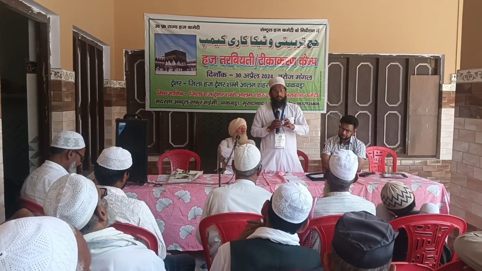 उत्तर प्रदेश मुरादाबाद जिले के कस्बा पाकबड़ा स्थित मदरसा अब्दुल गफूर नईमी शनिवार का बाजार जिला हज ट्रेनर काजी शम्मे आलम की देखरेख में स्वास्थ्य विभाग टीम द्वारा 117 आजमीने हज को मैनइनजाइटिस इनफ्लुएंजा की वैक्सीन लगाई गई तथा पोलियो ड्राप पिलाई गई क़ाज़ी शम्मे आलम हज ट्रेनर ने कहा सरकारी गाइडलाइन के मुताबिक जिस सामान का ले जाना मना है।