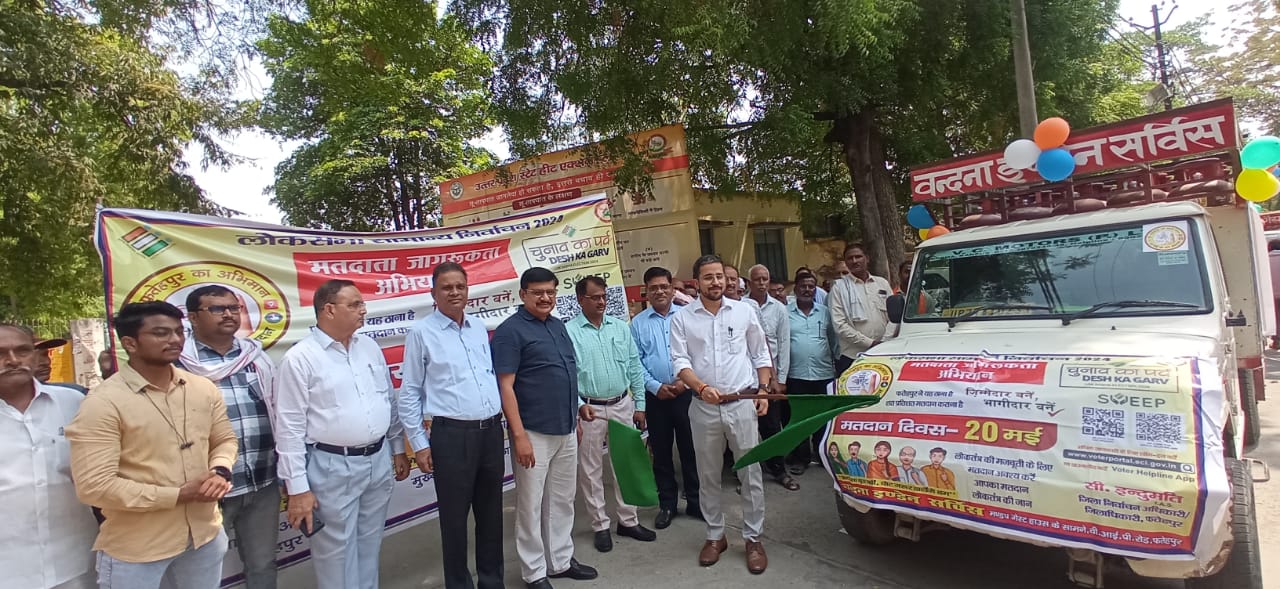 उत्तर प्रदेश फतेहपुर जिले में लोकतंत्र का पर्व, देश का गर्व कोई भी मतदाता मत देने से न छुटे के लिए स्वीप के तहत कलेक्ट्रेट परिसर में लोक सभा सामान्य निर्वाचन-2024 के 20 मई को होने वाले मतदान को शत-प्रतिशत मतदान करने हेतु मतदाताओं को जागरूक करने के दृष्टिगत मतदाता जागरूकता अभियान के प्रचार वाहनो (इंडेन गैस/भारत गैस) को मुख्य विकास अधिकारी पवन कुमार मीना, द्वारा हरी झण्डी दिखाकर शुभारम्म किया गया। वाहन में रखे गैस सिलेण्डरो पर जागरूकता अभियान का स्लोगन स्टीकर मुख्य विकास अधिकारी ने चस्पा किया। गैस एजेन्सियों के माध्यम से मतदाता जागरूकता अभियान के स्लोगन के स्टीकर चस्पा किये गये है। मतदाता जागरूकता अभियान के दृष्टिगत मतदान दिवस 20 मई, 2024 तक डिलेवरी होने वाले रसोई गैस सिलेण्डर में स्टीकर चस्पा कर मतदाताओं को शत-प्रतिशत मतदान करने हेतु जागरूक किया जायेगा। इस मौके पर प्रमोद कुमार चन्द्रौल जिला विकास अधिकारी, शेषमणि सिंह परियोजना निदेशक डीआरडीएं फतेहपुर, अशोक कुमार गुप्ता डी.सी.मनरेगा एवं अभय सिंह जिला पूर्ति अधिकारी,जिला सूचना अधिकारी आर.एस.वर्मा उपस्थित रहे।