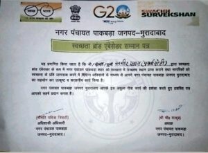इसका निर्वाह वह पूर्ण निष्ठा से करेंगे और शहर,जनता ओर समाज को सफाई के प्रति जागरुक करते हुए गंदगी और कूड़े को खत्म करने के लिए भी आमजन को जागरूक करेंगे। स्वच्छ सर्वेक्षण में यह होगी ब्रांड एंबेसडर की भूमिका स्वच्छ सर्वेक्षण-2024 के तहत वोकल फार लोकल ब्रांड एंबेसडर की भूमिकाएं भी निर्धारित की गई हैं। इनमें मासिक आधार पर स्वच्छ भारत मिशन की टीम के साथ बैठक में सहभागिता और गतिविधियों के आयोजन के लिए सुझाव एवं परामर्श देना, वार्ड स्तर पर स्वच्छता विषय पर आयोजित गतिविधियों का आयोजन करना, श्रमदान कार्यक्रमों, गार्बेज रन, स्वच्छता शपथ जैसे कार्यक्रमों में भागीदारी, दूसरे व्यक्तियों को स्वच्छता के प्रति जागरूक करना, कचरा अलगाव के प्रति जागरूकता फैलाना, होम कंपोस्टिग, स्वच्छता एप आदि के उपयोग एवं सिद्धांतों के बारे में जनसमुदाय को जागरूक करना तथा निकाय स्तर पर आयोजित होने वाले कार्यक्रमों में स्वच्छता संबंधी विचारों से जनमानस को जागरूक करना शामिल हैं।:- मुरादाबाद से शाकिर अंसारी की रिपोर्ट