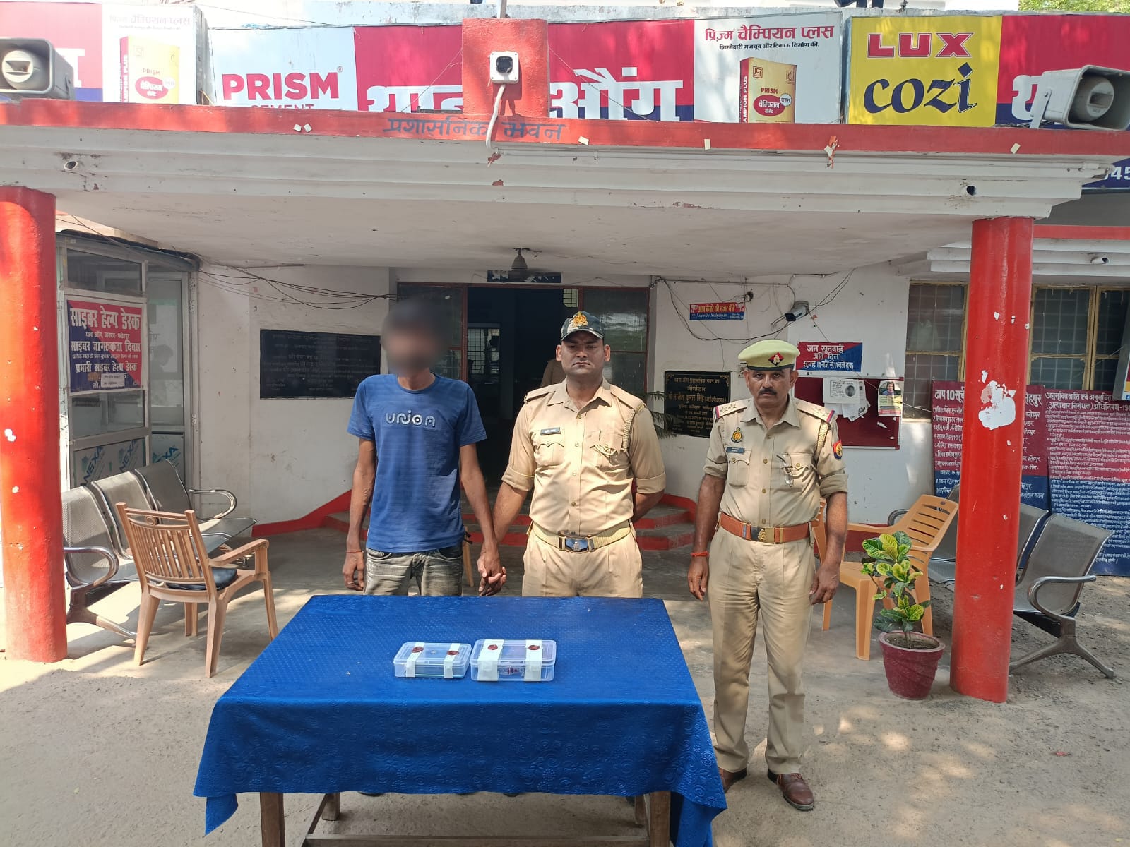 उत्तर प्रदेश फतेहपुर जिले के पुलिस अधीक्षक के निर्देशन में क्षेत्राधिकारी बिन्दकी के निकट पर्यवेक्षण में थाना स्थानीय पर पंजीकृत मु0अ0सं0 55/2024 धारा 379 भादवि से सम्बन्धित चोर को प्रभारी निरीक्षक ने अपनी टीम के साथ आरोपी थाना क्षेत्र के कस्बे की मूलचन्द गली निवासी हरि सिंह का 22 वर्षीय पुत्र छोटू उर्फ राज सिंह को एक अदद मोबाइल वीवो कम्पनी का नीले रंग का और एक अदद अवैध तमन्चा 315 बोर व 02 अदद जिन्दा कारतूस 315 के साथ थानां क्षेत्र के करचलपुर गांव से पहले अमरुद की बाग के पास रोड़ के किनारे से चोरी हुए वीवो कम्पनी का मोबाइल IMEI नम्बर 1.865752056903099 IMEI नम्बर 2. 865752056903081 के साथ गिरफ्तार किया गया। गिरफ्तारी के बाद नियमानुसार आवश्यक व विधिक कार्यवाई कर न्यायालय भेजा गया। आरोपी का अपराधिक इतिहास है उसके विरुद्ध जहानाबाद थाने व औंग थाने में केश दर्ज है।