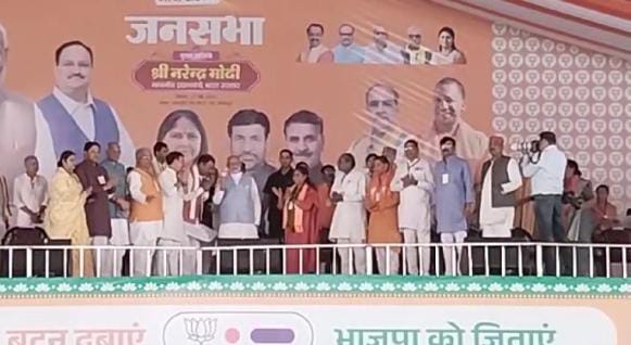 12 बजकर 40 मिनट पर जनसभा को प्रधानमंत्री नरेंद्र मोदी ने सम्बोधित करते हुए कहा कि सपा के शहजादे मुलायम के पुत्र अखिलेश यादव आतंकवाद को बढ़वा दे रहे हैं। माफिया सपा के मुख्यमंत्री से मिलने के लिए हेलीकॉप्टर से जाते थे। और सरकार आतंकवाद के आरोपियों से मुकदमे वापस लेती थी। आज यह लोग समाज को बांटने के लिए फिर से जहर घोल रहे हैं।उन्होंने कहा कि सपा कांग्रेस को लगता है। कि हमारे समाज को तोड़कर अपना काम बना लेंगे। इसलिए इनके हौसले बढ़ गए कांग्रेस के शहजादे राम मंदिर पर ताला डलवाने का ख्वाब देख रहे हैं। सपा के बड़े नेता कहते हैं राम मंदिर तो बेकार है। इनका गठबंधन देखिए, उनके गठबंधन के लोग कहते हैं। सनातन धर्म का विनाश कर देंगे। आप मुझे बताइए यह लोग आपके एक भी वोट के हकदार है क्या, इनको एक वोट भी देना चाहिए क्या? उनकी जमानत जब्त होनी चाहिए कि नहीं होनी चाहिए। साथियों सपा सरकार में यूपी अपराध में टॉप पर होता था लेकिन विकास में यूपी की गिनती पिछडे प्रदेश के तौर पर होती थी। उन्होंने कहा कि आज योगी के नेतृत्व वाली भाजपा सरकार ने उत्तर प्रदेश को विकास में टॉपर बना दिया है। उत्तर प्रदेश को आज सबसे ज्यादा एक्सप्रेस वे वाले राज्यों में टॉप पर है। आज एयरपोर्ट के मामले में यूपी टॉप पर है। गरीबों के लिए पीएम आवास योजना शुरू होने के बाद देश के तमाम राज्यों में गरीबों के लिए पक्के घर बनाना शुरू हुए। हमारी सरकार यहां सपा के शहजादे से लिस्ट मांगती रह गई कि यूपी में कितने गरीबों के घर बने हैं। वह जरा लिस्ट भेजो लेकिन महलों में रहने वाले इन लोगों ने इन गरीबों के नाम की लिस्ट नहीं भेजी । अगर वह लिस्ट भेज देते तो गरीबों को पक्के घर मिल जाते। केंद्र सरकार ने अनेकों बार सपा सरकार को पत्र लिखा अखिलेश जी को समझाया कि कुछ करो लेकिन वह टालते रहे। उन्होंने कहा कि यूपी के लोग इस बार इंडिया गठबंधन को उखाड़ कर फेंक देंगे। और हुआ भी यही अब 2017 के बाद से यूपी में जब से भाजपा सरकार आई है । पीएम आवास योजना के घर तेजी से बनने शुरू हुए हैं। अब तक भाजपा सरकार शहरों में 15 लाख और गांव में 35 लाख पक्के घर बनाकर गरीबों को दे चुकी है। और जिन्हें अब तक पक्के घर नहीं मिले हैं उन्हें भी मैं गारंटी दे रहा हूं। हर गरीब को पक्का घर मिलेगा जरूर मिलेगा। देश में हर गरीब परिवारों को रोजगार और नौकरी देकर मजबूत किया जायेगा।