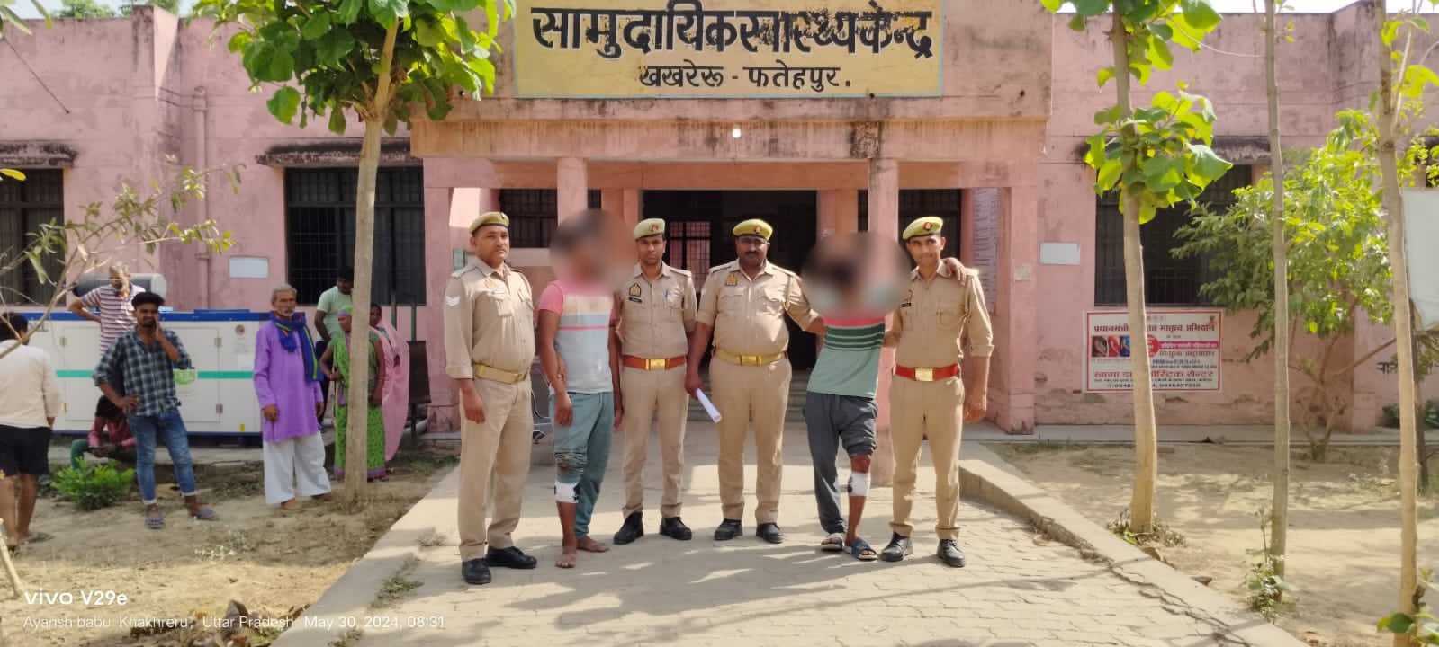 उत्तर प्रदेश फतेहपुर जिले की खखरेरू पुलिस को बड़ी सफलता मिली। दिनांक 30 अपैल 2024 को एक सराफा व्यवसाई के साथ हुई लूट की घटना में पुलिस और बदमाशों के बीच मुठभेड़ के दौरान तीन आरोपीयो को गिरफ्तार किया। और तलासी दौरान उनके पास से माल मशरुका आभूषण ,अवैध तमंचा कारतूस व घटना में प्रयुक्त बाइक सहित नगदी रुपए बरामद किया। थाना क्षेत्र के शिवपुरी से दामपुर जाने वाली रोड के कबरे तिराहे पर दिनांक 30 मई 2024 को अपराध व अपराधियों के नियन्त्रण के कृम में उच्चाधिकारियों के निर्देश पर प्रभारी निरीक्षक खखरेरू मय हमराह के सघन चेकिंग कर रहे थे। कि कबरे की ओर से एक मोटरसाइकिल अपाचे पर तीन लोग आते हुए दिखाई दिया। तभी पुलिस ने रोकने का इशारा किया तो आरोपी भागने का प्रयास करने लगे व अनियंत्रित होकर मोटरसाइकिल से नीचे लड़खड़ाकर गिर पड़े।