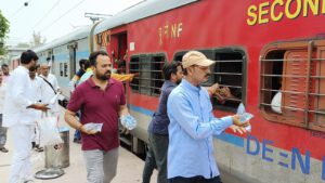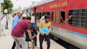 गर्मी से राहत देने हेतु शीतल पेय में जल व बिस्कुट का वितरण गुरुद्वारे के प्रधान चरनजीत सिंह व वाणिज्य अधिकारी महेंद्र गुप्ता के मार्गदर्शन में रेलवे स्टेशन में किया गया। जिसमें लगभग ४०० यात्रियों को राहत सामग्री वितरित की गई।