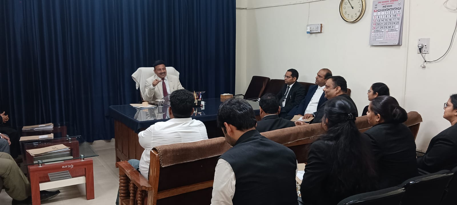 उत्तर प्रदेश फतेहपुर जनपद न्यायाधीश/अध्यक्ष जिला विधिक सेवा प्राधिकरण रणंजय कुमार वर्मा के नेतृत्व में आज दिनांक-30.05.2024 को समस्त न्यायिक अधिकारियो के साथ आगामी राष्ट्रीय लोक अदालत दिनांक-13.07.2024 के सफल आयोजन एवं अधिकाधिक वादो के निस्तारण के लिए जनपद न्यायाधीश के मीटिंग कक्ष में बैठक आहूत की गयी। बैठक में रणंजय कुमार वर्मा, जनपद न्यायाधीश/अध्यक्ष जिला विधिक सेवा प्राधिकरण, मो0 इलियास प्रथम, अपर जिला एवं सत्र न्यायधीश, अनिल कुमार टप्, अपर जिला एवं सत्र न्यायाधीश, हरि प्रकाश गुप्ता अपर जिला एवं सत्र न्यायाधीश, कोर्ट न. 03, अविजीत भूषण, अपर जिला एवं सत्र न्यायाधीश, न्यायालय ई0सी0 एक्ट, महेन्द्र कुमार द्वितीय, अपर जिला एवं सत्र न्यायाधीश/स्पे0 पाक्सो एक्ट, अजय सिह-प्रथम अपर जिला जज/सचिव, जिला विधिक सेवा प्राधिकरण, फतेहपुर अनुराधा शुक्ला, सिविल जज (सी0डि0), मो0 साजिद द्वितीय, अपर मुख्य न्यायिक मजिस्टेªट-कोर्ट न0-02, अनुपम कुशवाहा, सिविल जज (सी0डि0)/एफ0टी0सी0, श्रीमती अंकिता सिंह-तृतीय सिविल जज, जू0डि0, बिन्दु यादव, अपर सिविल जज/जू0डि0 कोर्ट न0-07, भावना साहू, अपर सिविल जज/जू0डि0 कोर्ट न0-01, ईसान्त जायसवाल, अपर सिविल जज/जू0डि0 कोर्ट न0-02, प्रियंका गौतम, सिविल जज/जू0डि0/एफ0टी0सी0, कमलेश कुमार श्रीवास्तव, स्पेशल जे0एम0 आदि उपस्थित रहे।