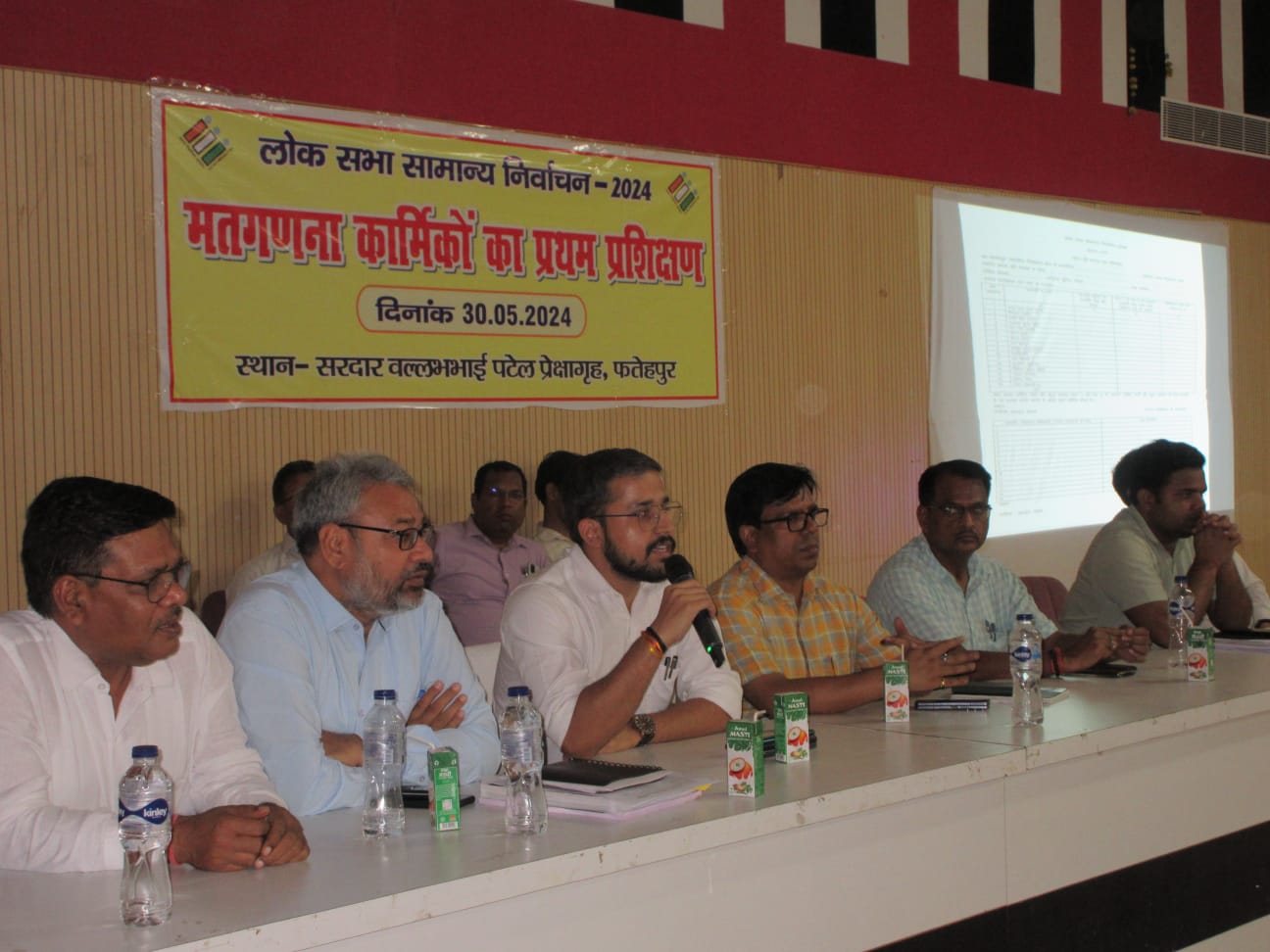 उत्तर प्रदेश फतेहपुर जिले कि निर्वाचन अधिकारी/जिलाधिकारी सी.इंदुमती के निर्देश के क्रम में मुख्य विकास अधिकारी/प्रभारी अधिकारी कार्मिक पवन कुमार मीना की उपस्थिति में मतगणना मे लगे कार्मिकों को प्रशिक्षण नामित मतगणना मास्टर ट्रेनर के द्वारा प्रशिक्षण आज दिन वृहस्पतिवार को सरदार वल्लभ भाई पटेल (प्रेक्षा ग्रह) में मतगणना कार्मिकों का प्रथम प्रशिक्षण दिया गया। मुख्य विकास अधिकारी अधिकारी/प्रभारी अधिकारी कार्मिक ने बताया कि मतगणना को सकुशल, निष्पक्ष, शांतिपूर्ण एवं पारदर्शिता व सुचारू रूप से संपन्न कराने के लिए मतगणना कार्मिक संवेदनशीलता एवं पूरे मनोयोग के साथ प्रशिक्षण प्राप्त करे।