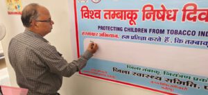 इसी के साथ-साथ मुख्य चिकित्सालय अधिकारी कार्यालय में डा० इश्तियाक अहमद ने हस्ताक्षर अभियान कर समस्त अधिकारी एवं कर्मचारियों को तम्बाकू न सेवन करने की शपथ दिलायी। साथ ही उन्होंने बताया कि तम्बाकू के उपयोग से फेफड़ों का कैंसर दिल से जुड़ी बीमारियों, सांस से जुड़ी बीमारियां आदि होती है। उन्होंने बताया कि डब्लू०एच०ओ० की थीम बच्चों को तम्बाकू इंडस्ट्री के इंटरफेरेंस से बचाना। इसके तहत लोगों तक यह संदेश पहुँचाया जायेगा कि बच्चों को तम्बाकू की फैक्ट्रियों में काम न कराया जाये।
