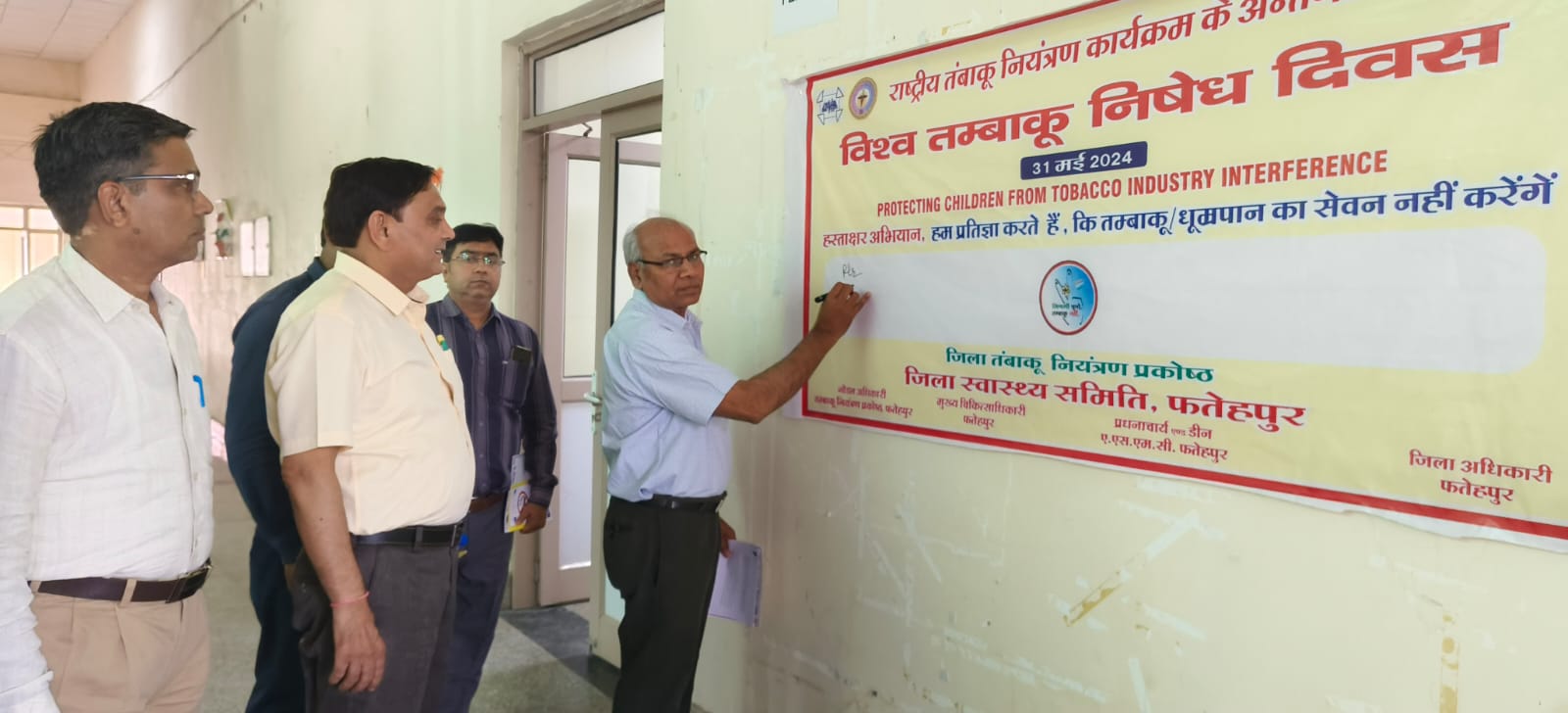 उत्तर प्रदेश फतेहपुर जिले में राष्ट्रीय तम्बाकू नियंत्रण कार्यक्रम के अन्तर्गत 31 मई 2024 विश्व तम्बाकू दिवस का आयोजन अमर शहीद जोधा सिंह अटटैया ठाकुर दरियाव सिंह मेडिकल कॉलेज, फतेहपुर प्रधानाचार्य एण्ड डीन डा० आर०पी० सिंह की अध्यक्षता में किया गया। प्रधानाचार्य एण्ड डीन डा० आर०पी० सिंह ने बताया कि विश्व स्वास्थ्य संगठन ने वर्ष 1987 में तम्बाकू निषेध दिवस मनाने का फैसला लिया। इसका मुख्य कारण था कि उस दौर में तम्बाकू का सेवन से होने वाली मौतों की संख्याओं की बढ़ोत्तरी होना। अगले वर्ष 1988 में विश्व तम्बाकू निषेध दिवस 31 मई को मनाया जाने लगा। उन्होंने सभी छात्रों को तम्बाकू के प्रयोग न करने की शपथ दिलायी गई।
