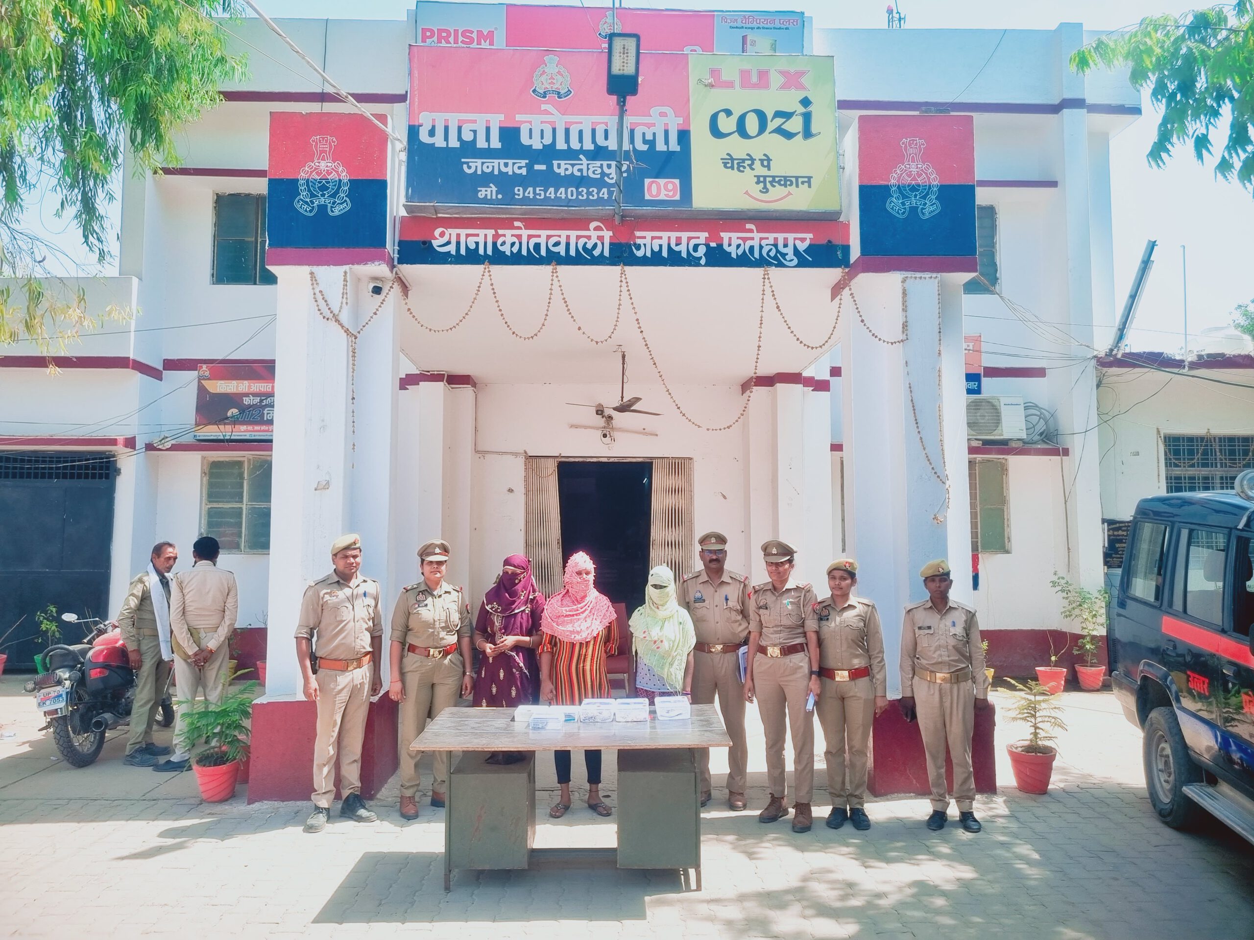 उत्तर प्रदेश फतेहपुर जिले की सदर कोतवाली पुलिस टीम द्वारा चोरी की घटना का खुलासा करते हुए तीन आरोपियों को मय माल के साथ गिरफ्तार कर लिया। पुलिस अधीक्षक द्वारा वांछित/वारन्टी की गिरफ्तारी किये जाने हेतु दिये गये निर्देश के अनुपालन में अपर पुलिस अधीक्षक के मार्गदर्शन प्रभारी निरीक्षक के नेतृत्व में आज तीन आरोपी 20 वर्षीय शिवानी उर्फ आलिया पुत्री रामगोपाल निवासी नई वस्ती आधारपुर सदर कोतवाली, 21 वर्षीय नीलम पुत्री शिवकरन गुप्ता निवासी बरौली थाना बबेरु जनपद बांदा, 20 वर्षीय राधा उर्फ सरोज पुत्री कल्लू निवासी कोराई थानां मलवां को पीली धातु व सफेद धातु के जेवरात कीमत लगभग 2,75,000/- रूपये व नगद 5,000/- रुपये व तीन अदद एन्ड्राइड फोन बरामद के साथ पी. डब्लू.डी तिराहा से गिरफ्तार कर विधिक कार्यवाई कर न्यायालय के लिए रवाना किया गया।