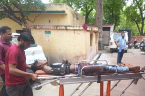 जिससे राज कुमार गम्भीर रूप से घायल हो गया।घटना की सूचना सरकारी 108 एम्बुलेन्स को दी गई। सूचना मिलते ही मौके पर पहुंची एम्बुलेन्स ने घायल को इलाज के लिए जिला अस्पताल पहुंचाया। जहाँ ड्यूटी पर मौजूद डॉक्टर ने प्राथमिक उपचार के बाद हालत गम्भीर देखते हुए सरकारी एम्बुलेन्स से कानपुर मेडिकल कॉलेज के लिए रेफर कर दिया।