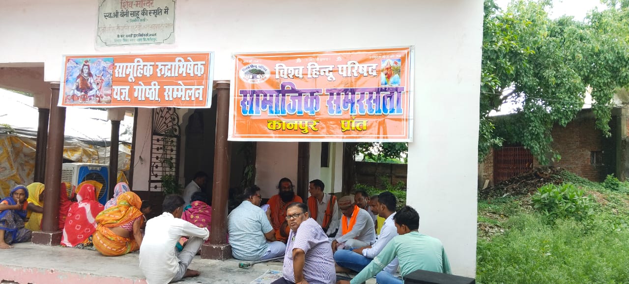 उत्तर प्रदेश फतेहपुर जिले में विश्व हिन्दू परिषद् और सामाजिक समरसता के बैनरतले दिनांक 2 अगस्त 2024 को बड़े हनुमान मंदिर परिसर में भाईचारा का प्रतीक सामोहिक रुद्राभिषेक, यज्ञ एवं गोष्ठी का आयोजन किया गया। जिसमें सैकड़ों श्रृद्धालुओं भक्तों ने इस कार्यक्रम में बढ़-चढ़कर हिस्सा लिया। खागा कस्बे के बड़े हनुमान मंदिर परिसर में विश्व हिन्दू परिषद् और सामाजिक समरसता का प्रतीक डा 0 शिव स्वरूप विश्वकर्मा ने सामाजिक रुद्राभिषेक यज्ञ एवं गोष्ठी का आयोजन कराते हुए कहा कि श्रृवण मास की पूजा काल का बड़ा महत्व एवं लाभदायक होता है। और आपसी भाई चारे का संदेश देने वाला यह कार्यक्रम है। इस दौरान सैकड़ों श्रृद्धालुओं ने भोलेनाथ की मूर्ति पर बेलपत्र पुष्प आदि चढ़ाकर आशिर्वाद प्राप्त करते हैं। और अपनी अपनी मनोकामनाएं पूर्ण करते हैं। और उन्होंने कहा कि समरसता से ही राष्ट्र रक्षा सम्भव है। मन्दिर, समसान और दुआ सभी के लिए है जो ऊंच नीच का भेदभाव करता है। वह सनातन धर्म का नहीं हो सकता है। इसलिए हिन्दू हम सब एक हैं। इस मौके पर नगर पंचायत अध्यक्ष गीता सिंह, आचार्य दीपू महराज, पुत्तू, विपिन, राजेश, उर्मिला, डा 0 अजय गुप्ता
