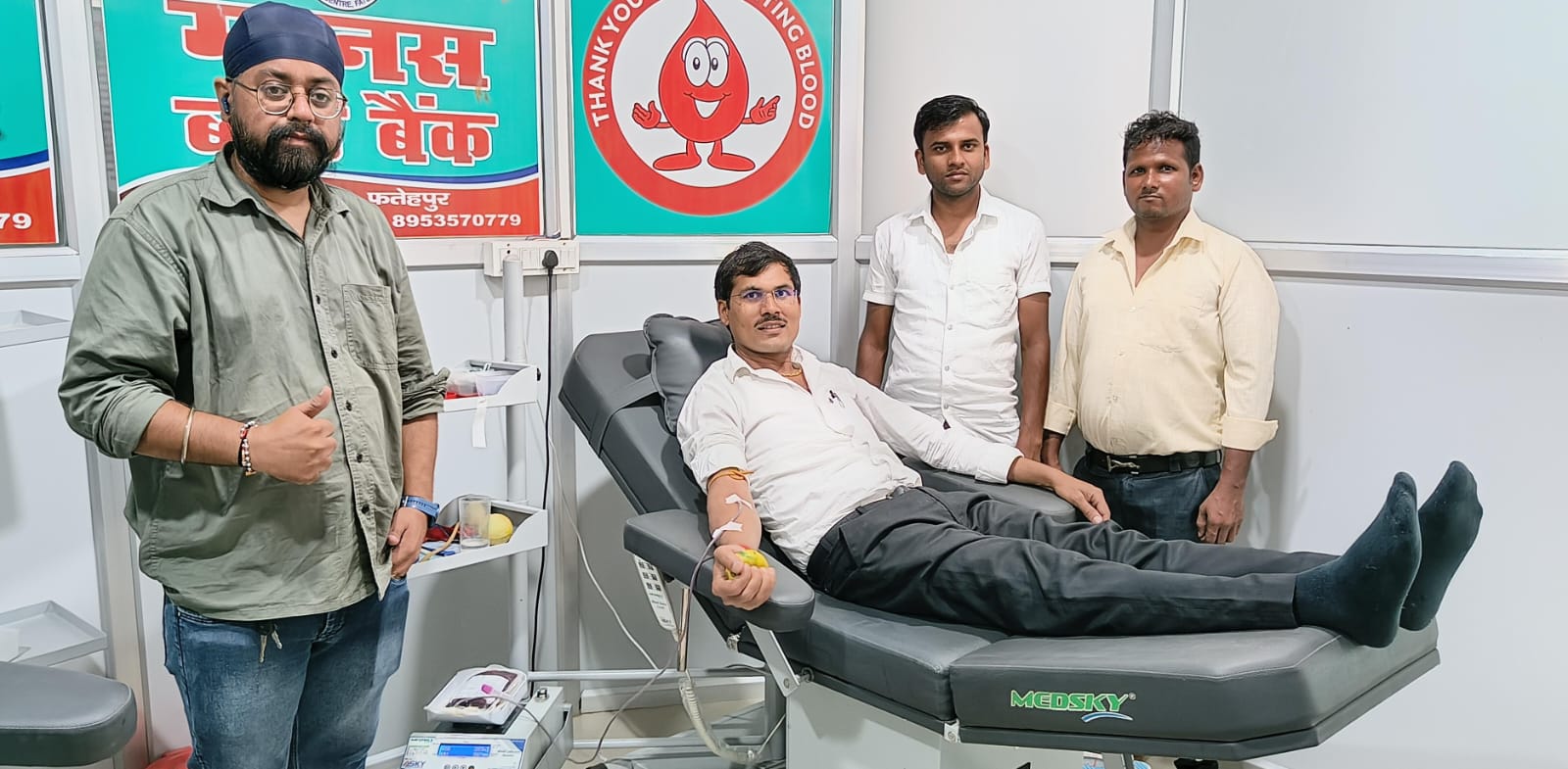 उत्तर प्रदेश फतेहपुर जिले में आज अपने जन्मदिन के उपलक्ष्य में भीखमपुर (कसियापुर) ग्राम प्रधान राजीव राज ने सर्व फॉर ह्यूमैनिटी के प्रबंधक गुरमीत को सूचना कर रक्तदान करने की इच्छा जाहिर किया। दोपहर 12 बजे रक्तकेन्द्र पहुचे, जहाँ राजीव राज ने अपना आठवा रक्तदान किया। और केक काटकर मौजूद लोगों ने शुभकामनाए दी, इस मौके पर सर्व फॉर ह्यूमैनिटी से गुरमीत सिंह, अंकित, गोलू पटेल रक्तकेन्द्र से डॉ सुरेश सचान, अमन यादव, सौरभ, अनामिका उपस्थित रहे।