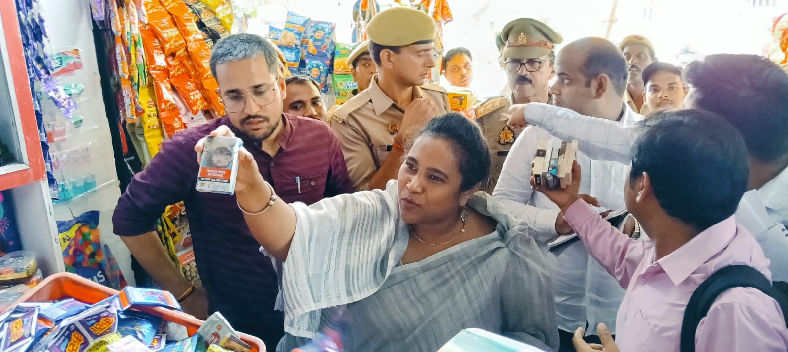 उत्तर प्रदेश फतेहपुर जिले में जिलाधिकारी सी.इंदुमती ने तंबाकू नियंत्रण अभियान के तहत जिला अस्पताल, नगर पालिका परिषद, वर्मा तिराहा में सड़क किनारे पान मसाला, गुटखा की दुकानों पर औचक छापेमारी किया। छापेमारी के दौरान पान मसाला, गुटखा की दुकान में इलेक्ट्रानिक सिगरेट, जिन तम्बाकू उत्पादों में डिब्बे के दोनो तरफ तंबाकू चेतावनी की साइनेज नही पाई गई।