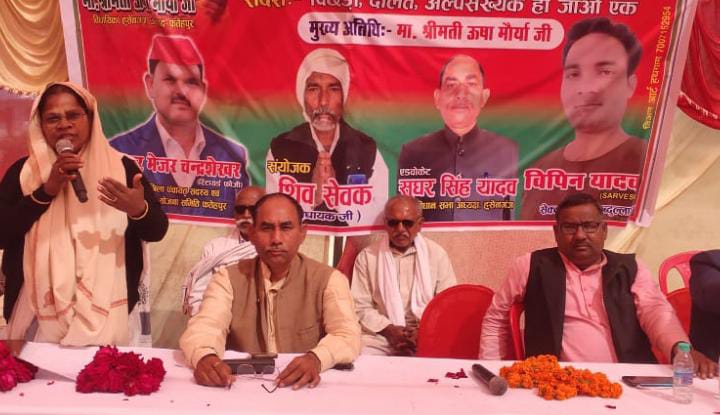 उत्तर प्रदेश फतेहपुर जिले के हुसैनगंज विधानसभा की पीडीए की बैठक सेक्टर नंबर 26 सेमरहा में हुसैनगंज विधानसभा अध्यक्ष सुघर लाल यादव एडवोकेट की अध्यक्षता में आयोजित हुई। मीटिंग का संचालन समाजवादी पार्टी के वरिष्ठ नेता समाज सेवक राजेश यादव ने किया।मुख्य अतिथि के रूप में विधायक ऊषा मौर्या मौजूद रहीं।बैठक में बाबा साहब डॉक्टर भीमराव के योगदान पर परिचर्चा हुई। जिसमें कहाकि शिक्षा, चिकित्सा, रोजगार,सामाजिक न्याय, जाति जनगणना होनी चाहिए। जिसकी उत्तर प्रदेश सरकार एवं भारत सरकार अनदेखी कर रही है। जिसके कारण सामाजिक न्याय नहीं हो पा रहा है। जो गरीब है वह गरीब होता जा रहा है और जो अमीर है वह अमीर होता जा रहा है।डॉक्टर भीमराव अंबेडकर का कहना था कि स्वाभिमानी लोग ही संघर्ष की परिभाषा समझते हैं। जिनका स्वाभिमान मरा है वह गुलाम होते हैं। इसलिए मुर्दा लोग मिशन नहीं चलाते और जिंदा लोग मिशन को रुकने नहीं देते।बाबा साहब के मार्गदर्शन में समाजवादी पार्टी पीडीए की चर्चा के माध्यम से पीडीए के हक और अधिकार की लड़ाई लड़ने का काम कर रही है। बाबा साहब ने यह भी कहा था कि दलित और पिछड़े समाज में राजनीतिक समझ अभी कम है। यह दलित, पिछड़ों की अब समस्या नहीं है बल्कि समस्या यह है कि अपने समाज के पढ़े-लिखे लोग भी भारतीय जनता पार्टी के साथ चले जाते हैं। जबकि भाजपा समाज में ऊंच नीच, भेदभाव और नफरत पैदा करने वाली पार्टी है। हमारे पिछड़े एवं दलित समाज के प्रतिनिधि भी भाजपा के पीछे खड़े हुए हैं। अगर जनप्रतिनिधियों की संख्या बल को देखा जाए तो बीजेपी में पिछड़ा, दलित समाज की संख्या कम नहीं है लेकिन कोई भी नेता सामाजिक न्याय अथवा जाति जनगणना की बात नहीं करता। भाजपा की मंशा है कि पीडीए समाज का व्यक्ति सक्षम हो जाएगा तो भाजपा पूछ कम हो जाएगी इसलिए भाजपा समाज का केवल वोट लेना चाहती है। उनको बढ़ाना नहीं चाहते।मुख्य रूप सेबैठक में विधायक ऊषा मौर्या एवं विधानसभा अध्यक्ष सुघर लाल यादव एडवोकेट ने लोगों से आग्रह किया कि आप लोग विचारधारा वाले व्यक्ति की पहचान करिए और जो अंबेडकरवाद और समाजवाद की विचारधारा का हो उस व्यक्ति को अपना वोट करिए अन्यथा आपके ही समाज का व्यक्ति सामंत वादियों के साथ खड़ा होकर आने वाली आपकी पीढ़ी को गुलाम बनाने में उनकी मदद करेगा। बैठक में डॉक्टर बच्छराज सिंह मौर्य, सूबेदार मेजर चंद्रशेखर रिटायर्ड फौजी, कैफ़ी सभासद, शिव जी स्वर्णकार पूर्व प्रधान, राजेंद्र सिंह फौजी, सिंह, सुधेश कुमार मौर्य, पुष्पेंद्र कुमार, अनूप सिंह लोधी, जीवन लाल, कंधई लाल मौर्य, ननकाई सोनी, सोहन लाल मौर्य, राजू मौर्य, जुगराज पाल, सुभाष पाल, संजय दत्त राय, दीपू पाल, फूलचंद्र गौतम, राधे किशन गौतम, रोशन लाल लोधी, मोनू यादव, हीरा यादव,