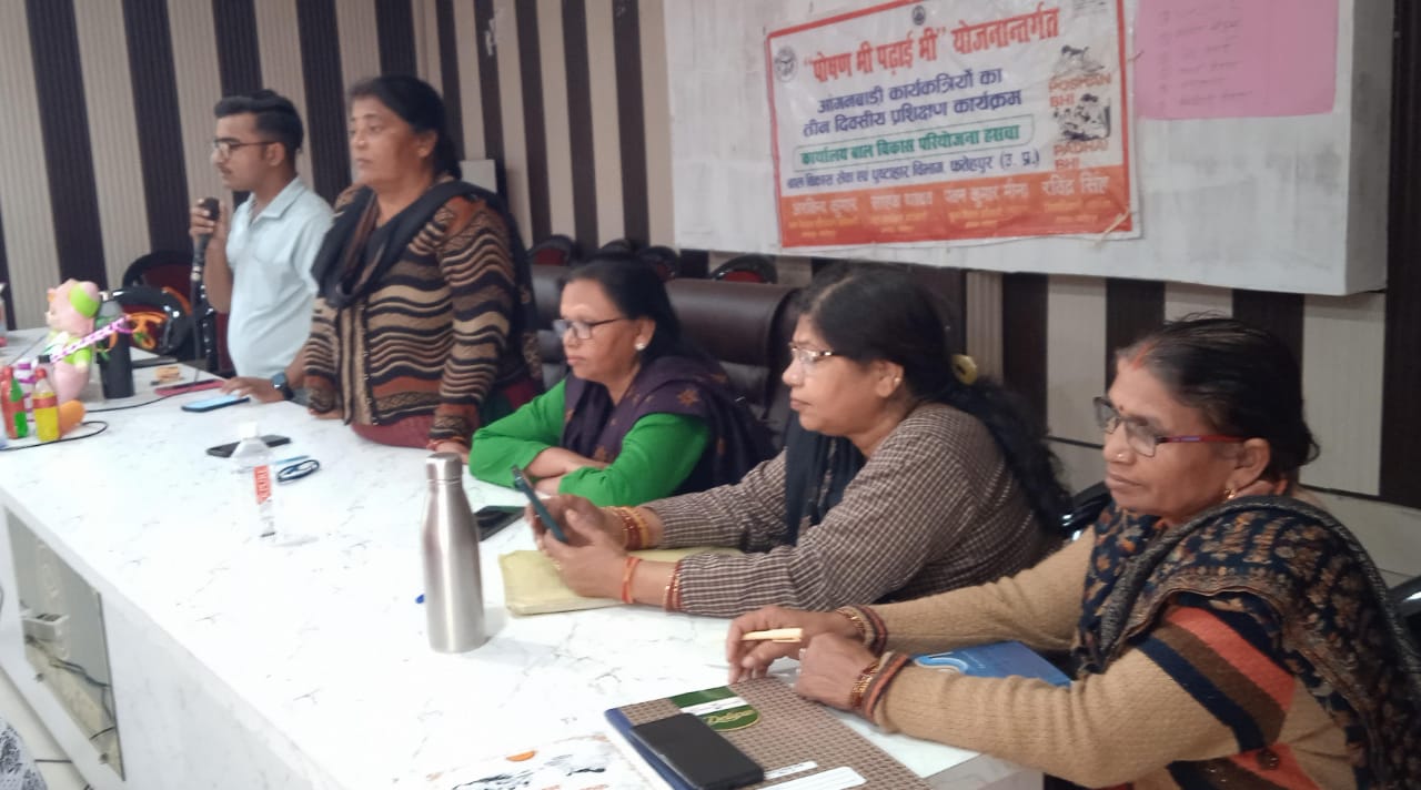 जिससे महिलाओं में किसी भी तरह की बीमारियों से परेशानी न उठाने पडे। प्रशिक्षक नीलेश तिपाठी ने आंगनबाडी महिलाओं को बताया कि गर्भवती महिलाओं को गर्भावस्था से लेकर बच्चों के जन्म लेने के साथ साथ ही बच्चों को विटामिन युक्त भोजन दिलाया जाए। जिससे माँ और बच्चा दो लोग स्वास्थ्य रहेगें। इसके अलावा विमला शर्मा ने आंगनबाडी महिलाओं को बताया कि गाँव में किशोरियों और गर्भवती महिलाओं को मुख्य रूप से समय-समय पर टीके अवश्य लगवाती रहे। और हरी सब्जी, एवं विटामिन युक्त आयरन, कैल्शियम, दूध और फल सेवन करवाएं। तभी गर्भवती माँ और बहनें पुरी तरह से स्वास्थ्य रहेगी। इस मौके पर हसवा ब्लॉक प्रमुख विकास पासवान, सीडीपीओ अरविंद कुमार, बीडीओ सतीश चंद्र पाडेय, एडीओं पचायत कौशलेन्द्र सिंह, सुपरवाइजर विमला शर्मा, फूल कली, अनीता कुमारी, नीरा भास्कर, एवं आंगनबाडी कर्मचारी महिलाऐं नितिन सिंह, सुखदा सिंह, गीता सिंह, प्रेमा सिंह, ज्ञान मती, सुमेर कली, आदि ऑगनवाडी कार्यकत्रियां मौजूद रहीं।