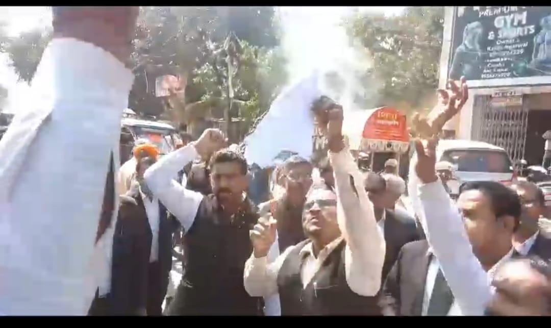 उत्तर प्रदेश फतेहपुर जिले की खागा तहसील में अधिवक्ताओं ने केंद्र सरकार के प्रस्तावित अधिवक्ता संशोधन विधेयक के खिलाफ जमकर भड़ास निकाली। और पूरे कचहरी एवं तहसील परिसर में घूम-घूम कर प्रधानमंत्री नरेंद्र मोदी एवं गृहमंत्री अमित शाह के खिलाफ नारेबाजी कर बिल की काल्पनिक प्रति जलाकर रोष प्रकट किया।मंगलवार को खागा तहसील एवं कचहरी परिसर पर वकीलों का गुस्सा प्रस्तावित अधिवक्ता संशोधन विधेयक के खिलाफ अधिवक्ताओं ने न्यायिक कार्यों का बहिष्कार कर कामकाज ठप कर दिया। और विरोध जुलूस निकालकर वकीलों ने जमकर नारेबाजी किया। कि तहसील एवं कचहरी में काम कराने आए लोगों को बैरंग लौटना पड़ा।वही खागा मॉडल बार संगठन के अध्यक्ष एवं महामंत्री के नेतृत्व में सैकड़ों अधिवक्ता तहसील गेट से सीओ कार्यालय होते हुए पूरे न्यायालय परिसर में घूम घूमकर अपना विरोध प्रकट करते रहे।साथ ही नारेबाजी करते हुए वकीलों ने चेतावनी दी कि यदि यह विधेयक लागू किया गया तो इसका अंजाम केंद्र की सरकार को भुगतना पड़ेगा। और कहा कि यह कानून।अधिवक्ताओं के अधिकारों को कुचलने का प्रयास है। इसे हर हाल में वापस लेना होगा अधिवक्ताओं ने चेताया की अगर यह विधेयक वापस नहीं होता तो विरोध प्रदर्शन और उग्र रूप धारण करेगा। जिसके संपूर्ण जिम्मेदारी केंद्र सरकार की होगी। वही यह भी कहा गया कि अगर बिल वापस ना हुआ तो कार्य का पूर्ण रूप से बहिष्कार भी किया जाएगा। इस मौके पर प्रमुख रूप से अध्यक्ष रामचंद्र श्रीवास्तव एडवोकेट , महामंत्री चंद्रशेखर यादव एडवोकेट, राजेंद्र सिंह एडवोकेट , यूसुफ सिद्दीकी एडवोकेट, इंद्रेश पांडे एडवोकेट, अशोक गुप्ता एडवोकेट , नीतू जयसवाल एडवोकेट ,शालू अग्रहरि एडवोकेट, सुशील नारायण शुक्ला एडवोकेट, केशचंद्र मिश्रा एडवोकेट, धर्मेंद्र सिंह, कृष्णाकांत त्रिवेदी, आशुतोष पांडेय, राजकुमार दुबे, महेंद्रराज सिंह, अरविंद पांडेय, अतुल मिश्रा, कपिल यादव, अखिलेश अग्रहरि, एसडी शुक्ला (भोले), दीपक तिवारी, शालू अग्रहरि राजेंद्र सिंह, धर्मेंद्र सिंह, संजय सिंह, शकील सिद्दीकी, इसराइल फारूकी, लक्षमीशंकर अवस्थी, रामसखा द्विवेदी, धीरेंद्र गुप्ता, अजय सिंह, रामप्रताप सिंह यादव, राहुल तिवारी, अविनाश यादव, मलखान सिंह, पंकज गुप्ता, आशीष दीक्षित, महेश सिंह, संदीप सिंह अंकित द्विवेदी, अजय सिंह, सहित सैकडो अधिवक्ता उपस्थित रहे।