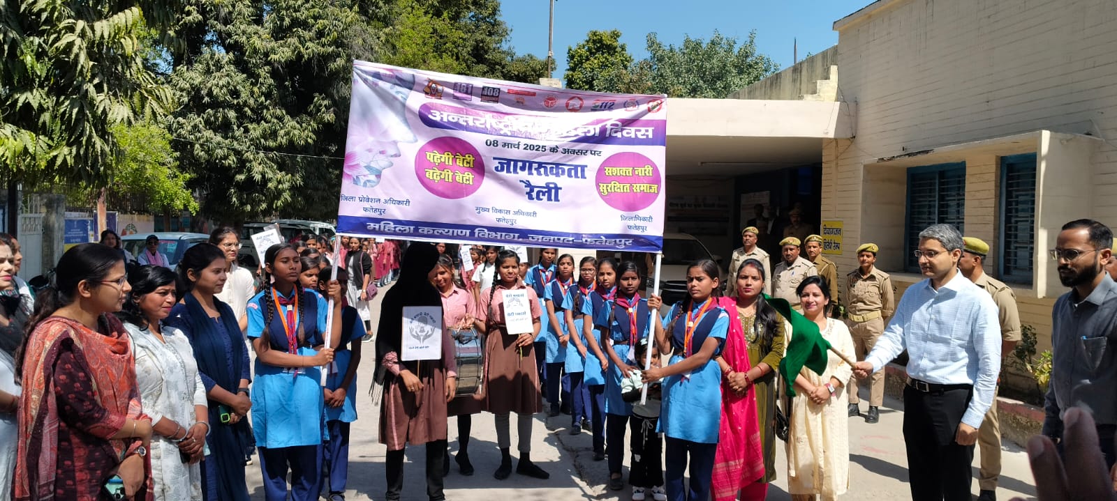 उत्तर प्रदेश फतेहपुर जिले में शासन के निर्देशानुसार बेटी बचाओ बेटी पढाओ योजना के 10 वर्ष पूर्ण होने के उपलक्ष्य में जनपद स्तर पर अन्तर्राष्ट्रीय महिला दिवस के उपलक्ष्य में बेटी बचाओ बेटी पढाओ योजनान्तर्गत जिलाधिकारी रविन्द्र सिंह ने कलेक्ट्रेट परिसर से पढ़ेगी बेटी बढ़ेगी बेटी, सशक्त नारी, सुरक्षित समाज जागरूकता रैली को हरी झण्डी दिखाकर रवाना किया। रैली के तदोपरान्त सरदार बल्लभ भाई पटेल प्रेक्षागृह में कस्तूरबा गाँंधी आवासीय विद्यालय तेलियानी, उच्च प्राथमिक विद्यालय एवं प्राथमिक विद्यालय की छात्राओं द्वारा आयोजित निबन्ध एवं पेन्टिग प्रतियोगिता का आयोजन किया गया। इस अवसर पर जिला बेसिक शिक्षा अधिकारी, जिला प्रोबेशन अधिकारी, जिला समन्वयक सर्व शिक्षा अभियान, वन स्टाप सेन्टर की समस्त टीम उपस्थित रही।