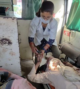 तभी कस्बे में उसकी बाइक अनियंत्रित होकर डिवाइडर से टकरा गई। जिससे बाइक चालक जगत पाल घायल हो गया, घायल अवस्था मे उसको इलाज के लिए बिंदकी सीएचसी पहुंचाया गया। जहाँ डॉक्टर ने प्राथमिक उपचार के बाद सरकारी 108 एम्बुलेंस की ईएमटी समीक्षा व पायलेट महेश के साथ जिला अस्पताल के लिए रेफर कर दिया। वही जिला अस्पताल पहुंचते ही ड्यूटी पर मौजूद डॉक्टर घायल को भर्ती कर उसका इलाज कर रहे है।
