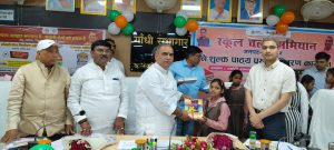 उत्तर प्रदेश फतेहपुर जिले के कलेक्ट्रेट महात्मा गांधी सभागार फतेहपुर में स्कूल चलो अभियान 2025–26 का शुभारंभ मा. प्रभारी मंत्री /राज्यमंत्री, विज्ञान, प्रौद्योगिकी, इलेक्ट्रॉनिक्स तथा सूचना प्रौद्योगिकी विभाग, उ0प्र0 सरकार, अजीत सिंह पाल, विधायक जहानाबाद राजेन्द्र सिंह पटेल, विधायक बिन्दकी जय कुमार सिंह जैकी, विधायक खागा कृष्णा पासवान, विधायक अयाह शाह विकास गुप्ता, भाजपा जिलाध्यक्ष श्री मुखलाल पाल, जिलाधिकारी रविन्द्र सिंह व मुख्य विकास अधिकारी पवन कुमार मीना ने द्वारा दीप प्रज्वलित कर तथा मां सरस्वती जी के चित्र पर माल्यार्पण कर किया। इस अवसर पर बेसिक शिक्षा विभाग की छात्र/छात्राओं द्वारा स्वागत गीत प्रस्तुत किए गए। आज स्कूल चलो अभियान के शुभारंभ के अवसर पर मुख्यमंत्री द्वारा जनपद बरेली से स्कूल चलो अभियान व संचारी रोग नियंत्रण अभियान के शुभारंभ कार्यक्रम का सजीव प्रसारण किया गया जिसे उक्त जनप्रतिनिधियों, अधिकारियों व छात्र-छात्राओं ने आत्मसात किया। बेसिक शिक्षा विभाग के अंतर्गत परिषदीय विद्यालयों के नव प्रवेश/पहले से अध्ययनरत बच्चों को मंत्री ने निःशुल्क स्कूल बैग, पुस्तक का वितरण किया। जिसे पाकर बच्चों के चेहरे में खुशी स्पष्ट रूप से झलक रही थी।