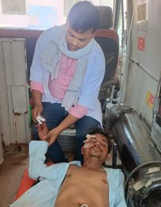 जिससे शफीक रोड पर गिरकर घायल हो गया घटना की सूचना सरकारी 108 एम्बुलेन्स को दी गई। सूचना मिलते ही मौके पर पहुंचे एम्बुलेन्स के ईएमटी विवेक व पायलेट हरी बाबू ने घायल को इलाज के लिए गाजीपुर सीएचसी पहुंचाया। जहाँ डॉक्टर ने प्राथमिक उपचार के बाद उसी एम्बुलेन्स से जिला अस्पताल के लिए रेफर कर दिया। वही जिला अस्पताल पहुंचते ही ड्यूटी पर मौजूद डॉक्टर भर्ती कर उसका इलाज कर रहे है।
