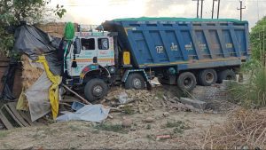उत्तर प्रदेश फतेहपुर जिले के बिंदकी कोतवाली क्षेत्र में मोरम भरा तेज रफ्तार अनियंत्रित डंपर चाय नाश्ते की एक दुकान में घुस गया। जिसके चलते हड़कंप मच गया। चालक खलासी बाल बाल बचे दुकान पूरी तरह से क्षतिग्रस्त हो जाने से कई हजार रुपए की संपत्ति का नुकसान हो गया। दुर्घटना से नाराज लोगों ने बाईपास चौराहे में चारों तरफ ब्रेकर बनवाने की मांग की है। जानकारी के अनुसार नगर के निकट कुंवरपुर रोड बाईपास चौराहे में शनिवार की सुबह लगभग 5:30 बजे मोरम भरा अनियंत्रित ट्रक सूरजपाल सिंह निवासी कुंदनपुर के चाय नाश्ते की दुकान में जा घुसा। दुर्घटना के बाद हड़कंप मच गया मौके पर भारी भीड़ लग गई। दुर्घटना में ट्रक के चालक और खलासी बाल बाल बच गए लेकिन दुकान के तखत काउंटर छप्पर मेज बेंच कुर्सी व अन्य सामान सहित लगभग ₹20000 की संपत्ति का नुकसान हुआ। खुशकिस्मती रही की दुकान में कोई था नहीं वरना मामला बड़ा हो जाता। बताया जाता है कि थोड़ी देर बाद ही सूरज पाल सिंह अपनी दुकान खोलने वाले थे यदि दुकान खुली होती तो चाय नाश्ता करने वाले कई लोग दुकान में बैठे होते ऐसे में बड़ी दुर्घटना हो सकती थी।