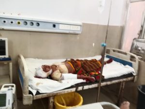 जब उसकी बाइक थाना क्षेत्र के शाखा गाँव के समीप पहुँची तभी ट्रैक्टर ने बाइक को टक्कर मार दिया। जिससे बाइक पर सवार उसकी पत्नी शकुंतला गंभीर रूप से घायल हो गई। घायल अवस्था मे उसको इलाज के लिए गाजीपुर सीएचसी पहुंचाया। जहाँ डॉक्टर ने प्राथमिक उपचार के बाद सरकारी 108 एंबुलेंस से जिला अस्पताल के लिए रेफर कर दिया। वहीं जिला अस्पताल पहुंचते ही ड्यूटी पर मौजूद डॉक्टर भर्ती कर उसका इलाज कर रहे हैं।