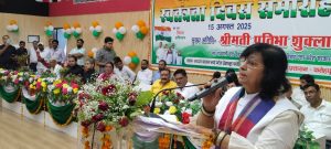 उत्तर प्रदेश फतेहपुर जिले में 79वें स्वतंत्रता दिवस के पावन अवसर पर सरदार वल्लभ भाई पटेल प्रेक्षा गृह में मुख्य अतिथि राज्यमंत्री, महिला कल्याण, बाल विकास एवं पुष्टाहार विभाग, उ0प्र0 सरकार, प्रतिभा शुक्ला ने ध्वजारोहण किया और राष्ट्रगान गाया गया और तिरंगा गुब्बारे उड़ाए। एनसीसी बैण्ड द्वारा राष्ट्रधुन का वादन भी किया गया।इस मौके पर सरदार वल्लभ भाई पटेल प्रेक्षा गृह के परिसर पर नीति आयोग, भारत सरकार द्वारा ‘वोकल फॉर लोकल ब्रांड’ के अन्तर्गत(15 से 21 अगस्त 2025 तक) ‘आकांक्षा’ हाट की लगाई गई प्रदर्शनी का राज्यमंत्री मंत्री, जिला पंचायत अध्यक्ष, विधायक खागा, जिलाधिकारी, मुख्य विकास अधिकारी ने श्रीगणेश की प्रतिमा पर माल्यार्पण व दीप प्रज्वलित कर एवं फीता काटकर शुभारंभ किया और प्रदर्शनी का अवलोकन किया। उन्होंने कहा कि इस पहल का उद्देश्य स्थानीय उत्पादों को बढ़ावा देना तथा स्वयं सहायता समूहों (एसएसजी), कारीगरों किसानों एवं उत्पादक समूहों को सशक्त बनाना है।