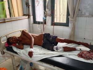 तभी गांव के समीप सामने से आ रहे ट्रैक्टर में लदी लकड़ी ई-रिक्शे से टक्करा गई। जिससे ई-रिक्शा पलट गया और रिक्शे में सवार बृजेश गंभीर रूप से घायल हो गया। हादसे की जानकारी उसके परिजनों को हुई तो तुरंत परिजन घटना स्थल पर पहुंचे और फोन कर घटना की सूचना सरकारी एंबुलेंस को दिया। सूचना मिलते ही मौके पर पहुंची एंबुलेंस ने घायल को इलाज के लिए जिला अस्पताल पहुंचाया। जहां ड्यूटी पर मौजूद डॉक्टर भर्ती कर उसका इलाज कर रहे हैं।