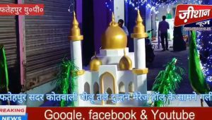 उत्तर प्रदेश फतेहपुर जिले में आज अल्लाह के रसूल नुरे मोहम्मद मुस्तुफा सल्लाहो अलेहे वसल्लम की यौमे विलादत के मौके पर शहर कस्बा और गाँव देहात पुरा जहाँ रोशनी में नहाया रहा। चारो तरफ खुशिया ही खुशियां थी। लोग अपने अपने मोहल्लों और घरों को रसूल की विलादत पर सजा कर खुशियां मनाने में मशगूल रहे।